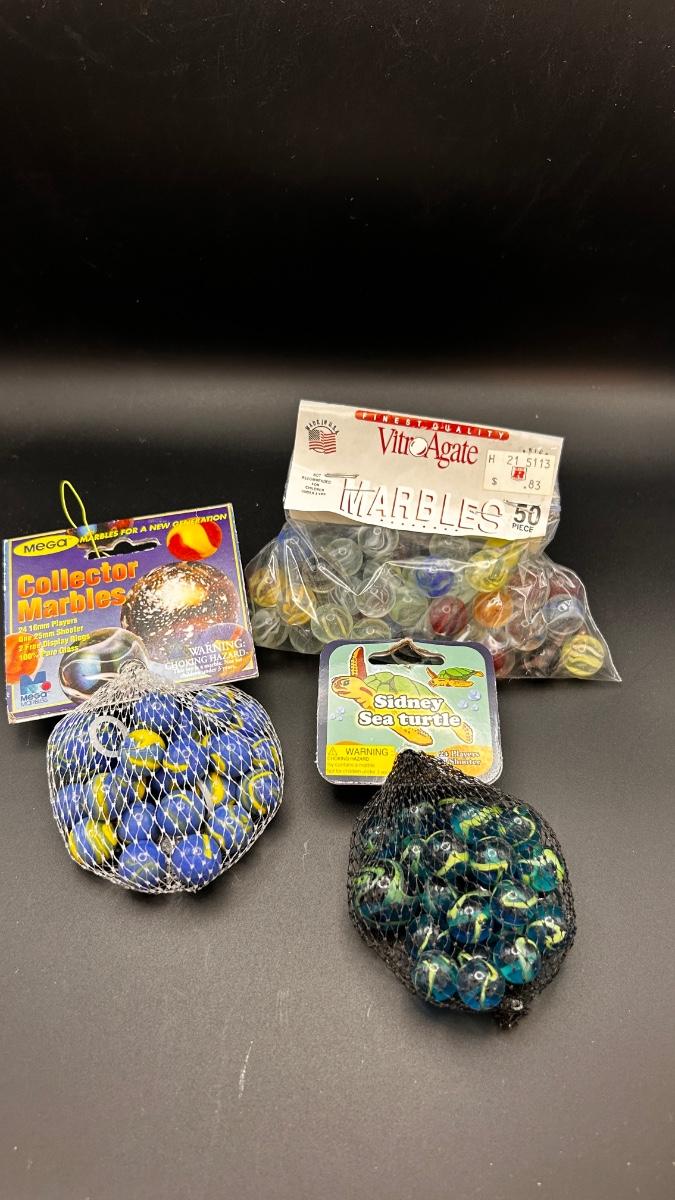 3 BAGS OF UNOPENED MARBLES