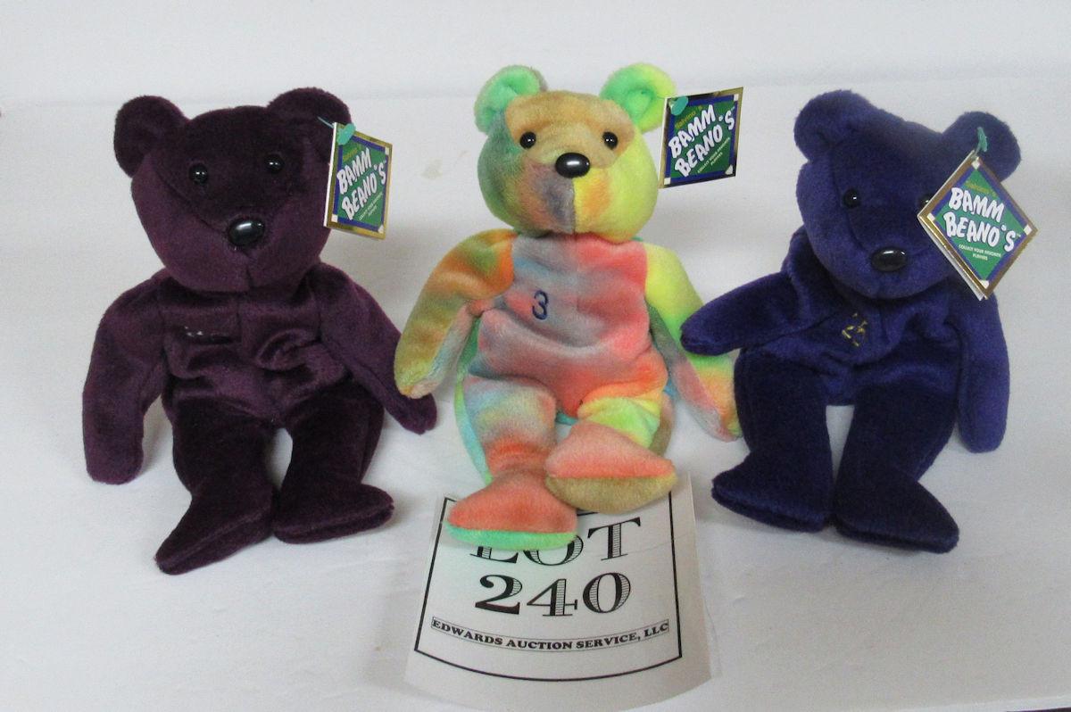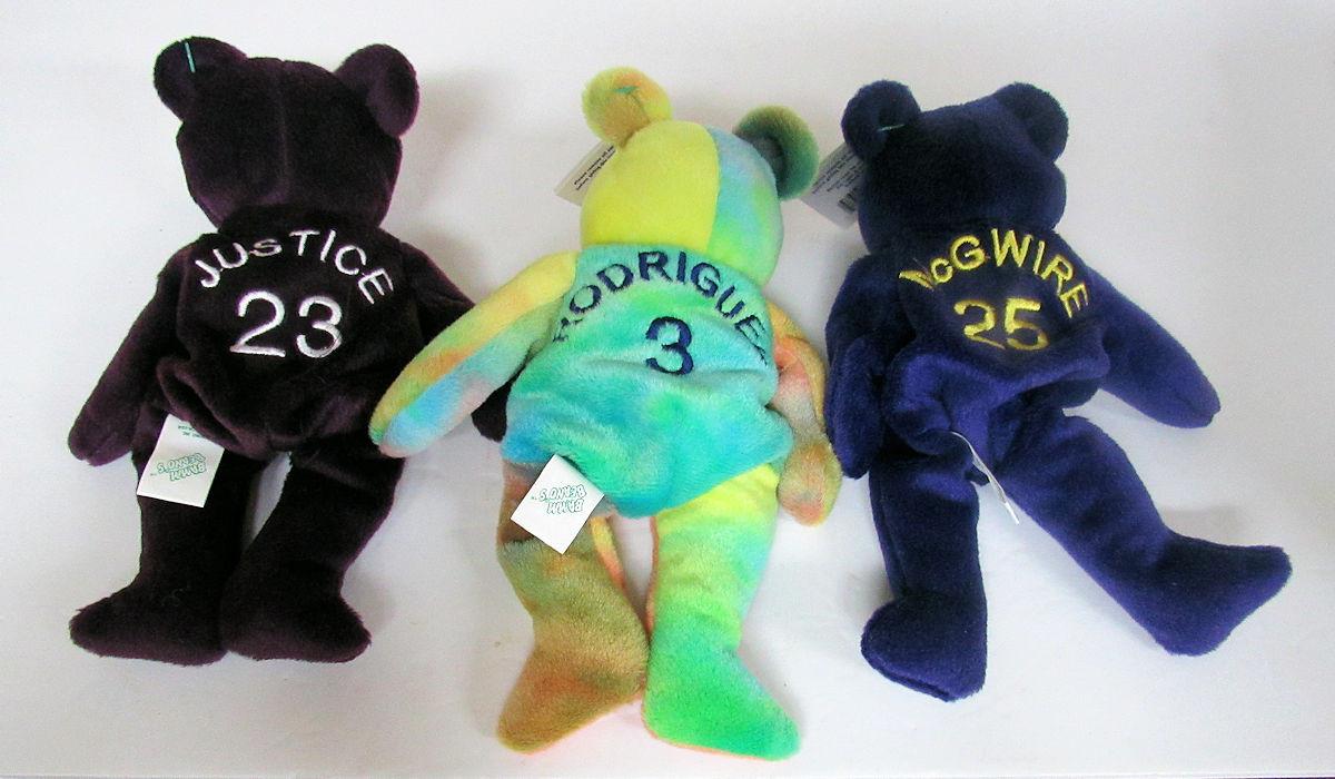3 Bam Beano Bears, Baseball Players Justice, Rodriguez, McGwire, Plush Bean Bag Bears