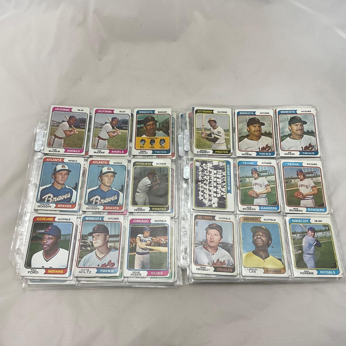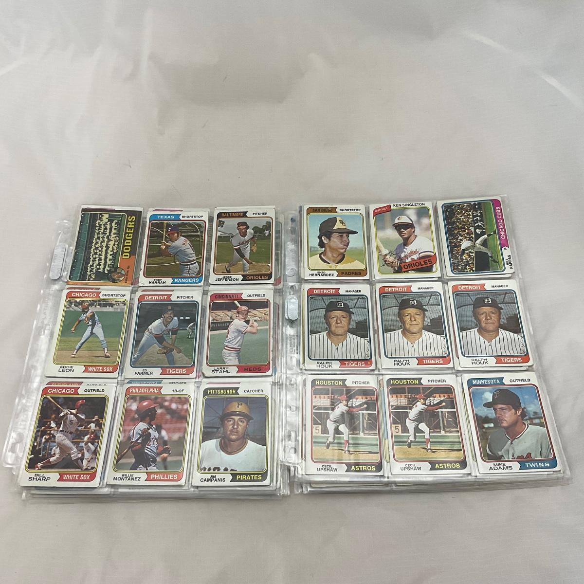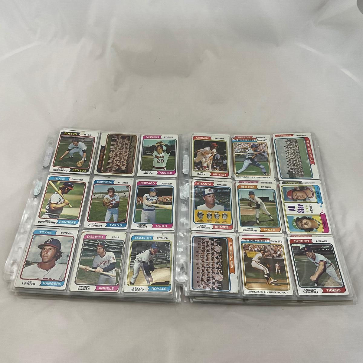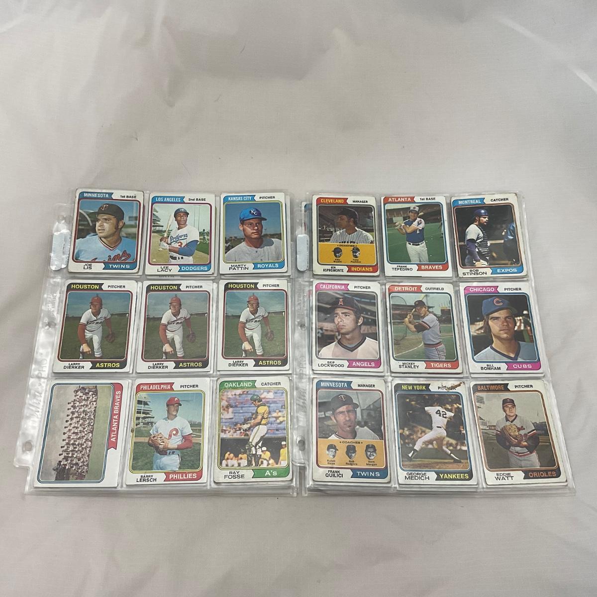 Collection of 1974 TOPPS vintage baseball cards. 19 pages of cards. There does seem to be some imperfections on some of the cards, as pictured. The 19 pages of cards will come with a binder to transport. Please see photos for details and condition. ::: Shipping is available on this lot. If you require shipping you must let us know at the close of the auction. We will coordinate with you after the item has been won. Shipping fees will include insurance up to or exceeding the value of all items being mailed. If you have any questions regarding this lot please contact the auctioneer either via this website, by direct email or by phone. PICK UP TIMES and other important information can be found in the TERMS and DESCRIPTION of the auction. Please take a look for pertinent information. Thanks!