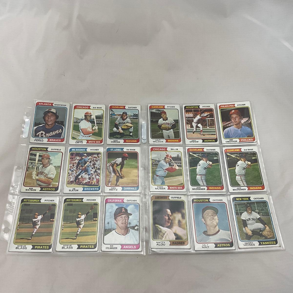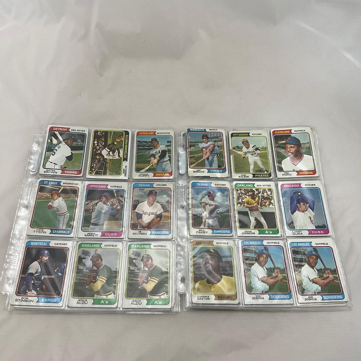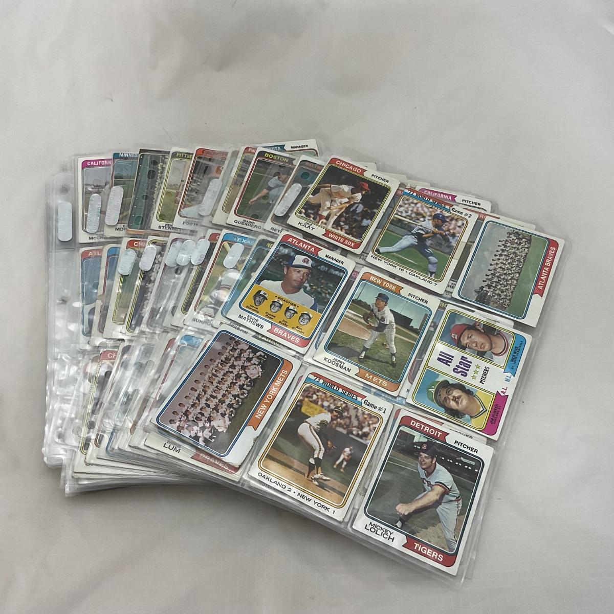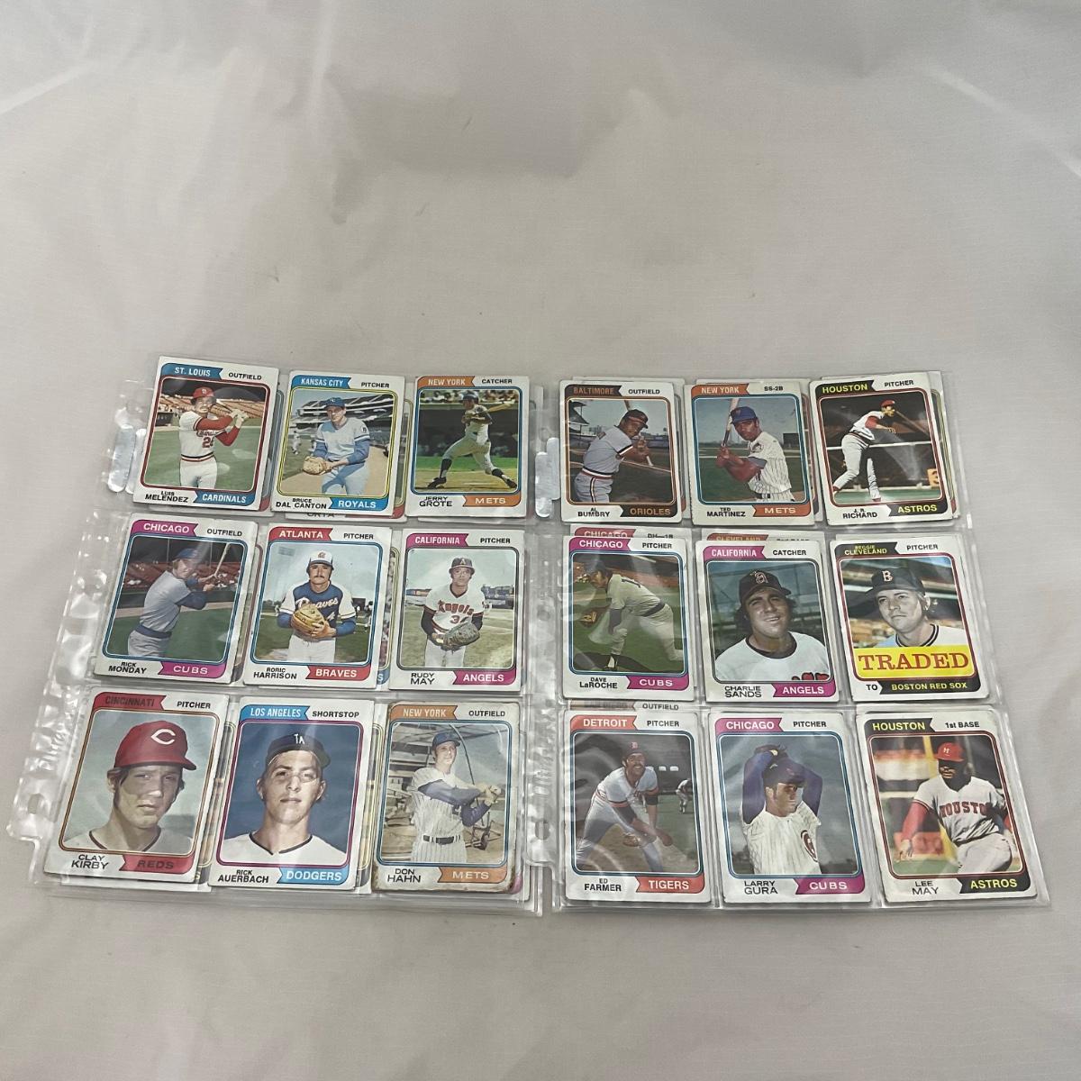 Collection of 1974 TOPPS vintage baseball cards. 19 pages of cards. There does seem to be some imperfections on some of the cards, as pictured. The 19 pages of cards will come with a binder to transport. Please see photos for details and condition. ::: Shipping is available on this lot. If you require shipping you must let us know at the close of the auction. We will coordinate with you after the item has been won. Shipping fees will include insurance up to or exceeding the value of all items being mailed. If you have any questions regarding this lot please contact the auctioneer either via this website, by direct email or by phone. PICK UP TIMES and other important information can be found in the TERMS and DESCRIPTION of the auction. Please take a look for pertinent information. Thanks!