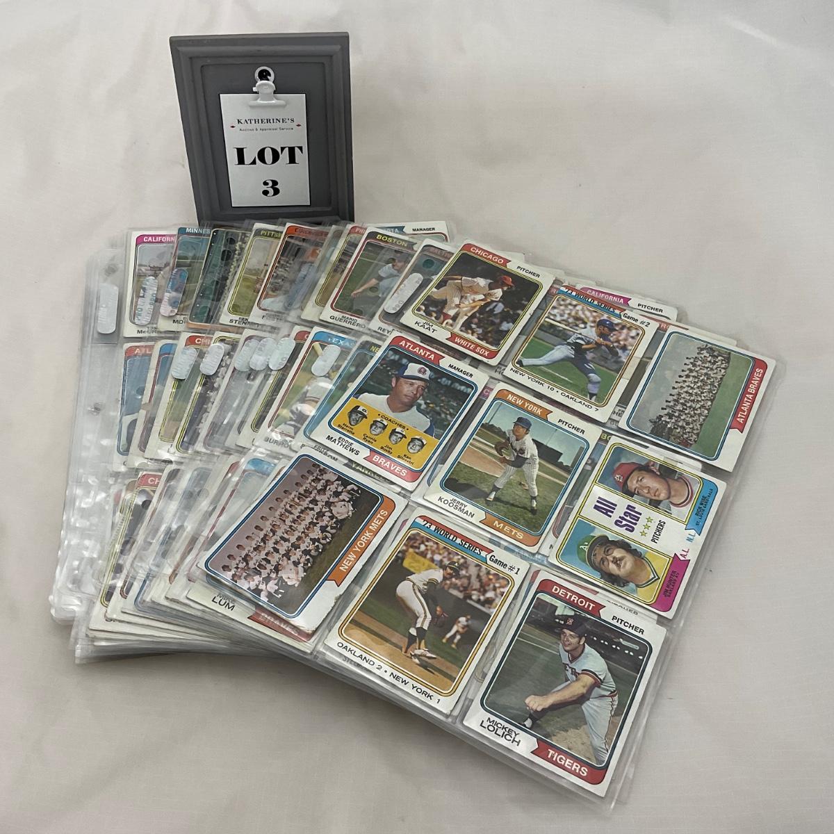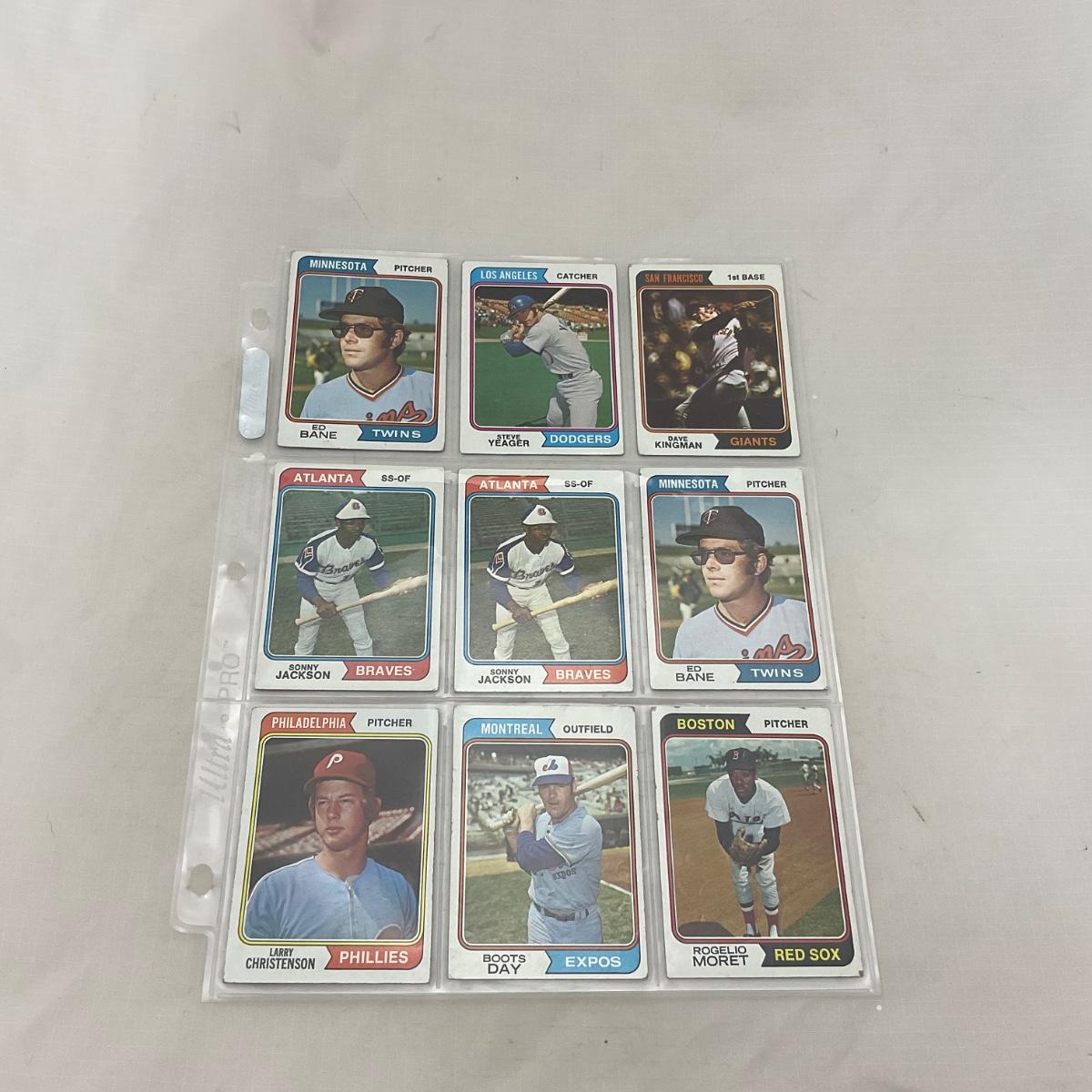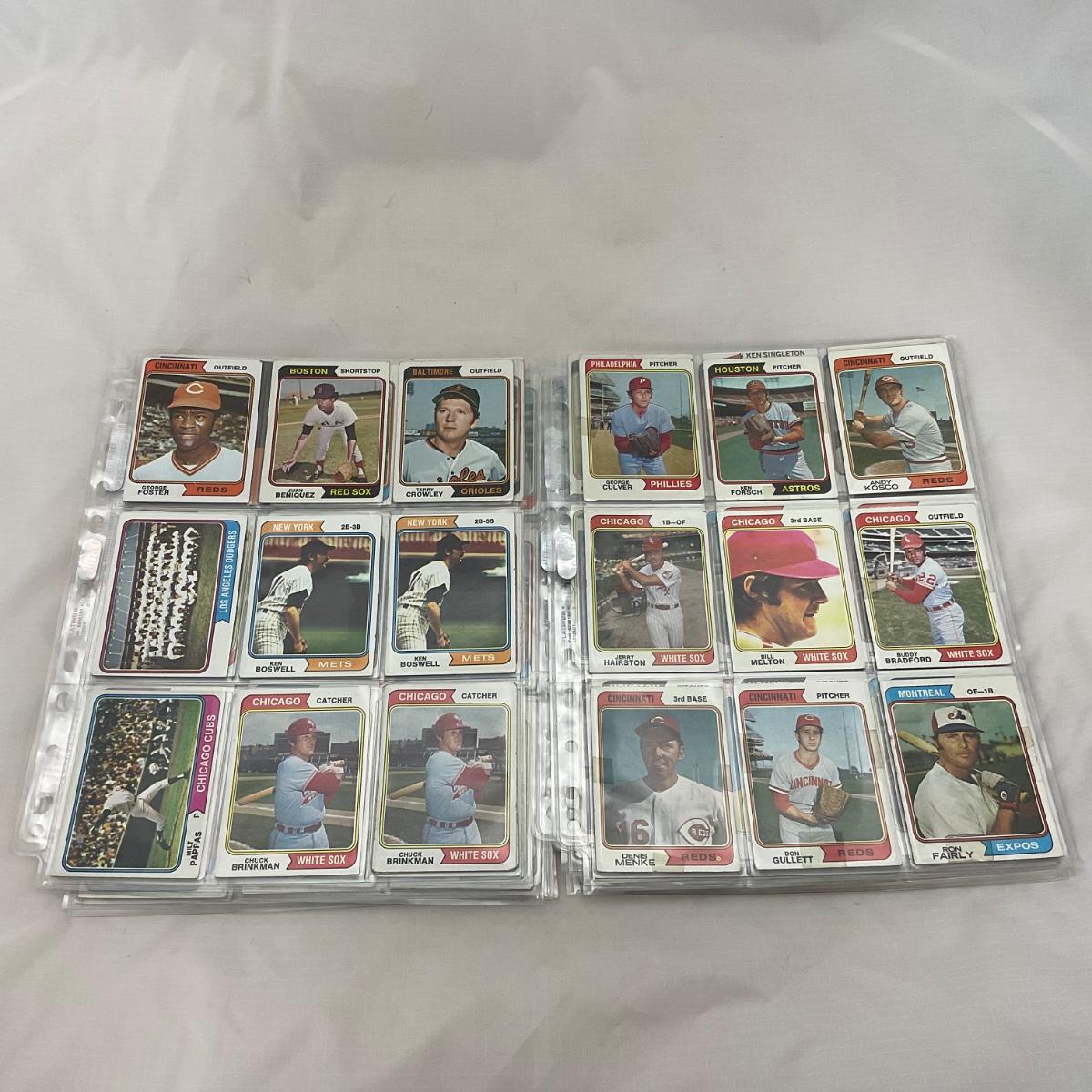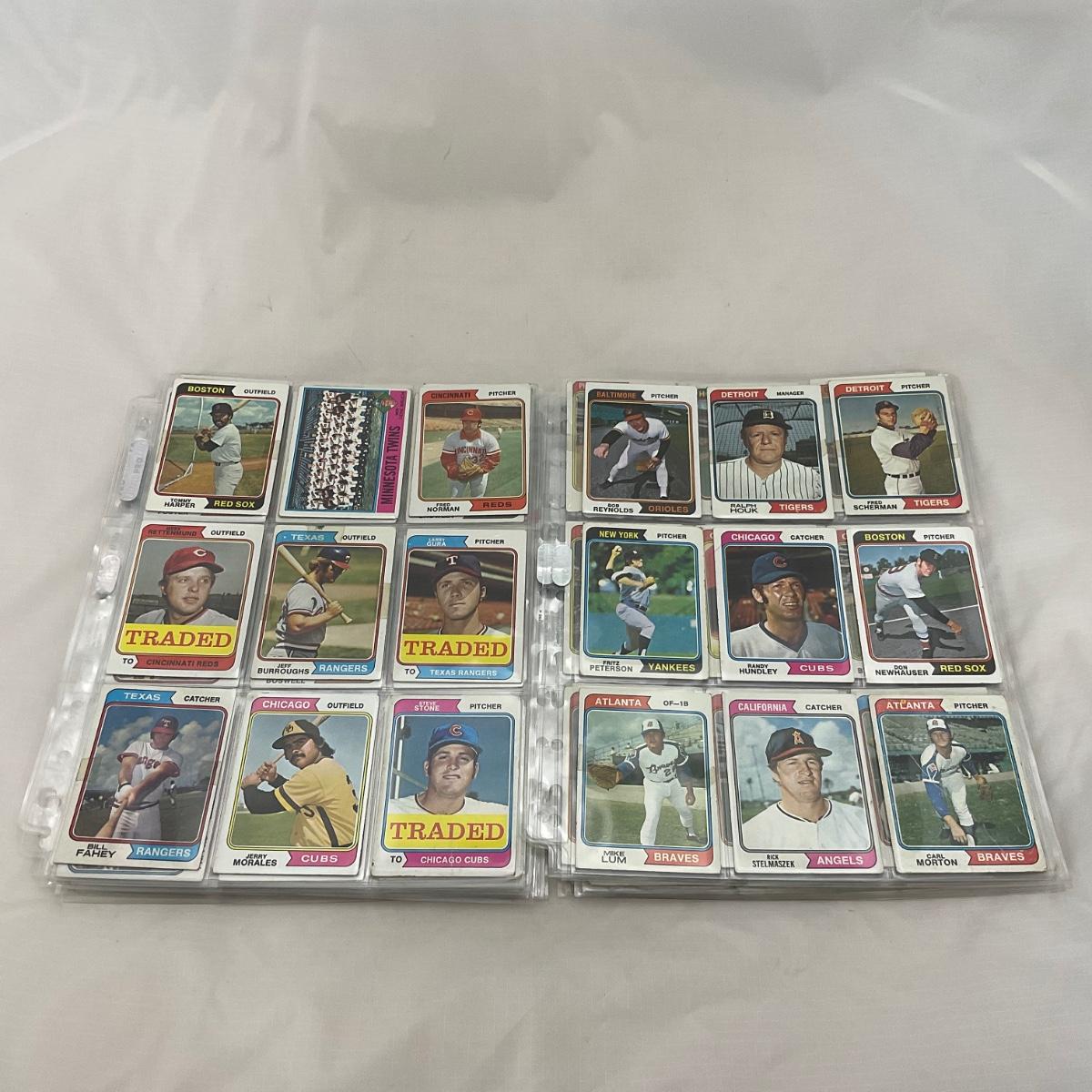 Collection of 1974 TOPPS vintage baseball cards. 19 pages of cards. There does seem to be some imperfections on some of the cards, as pictured. The 19 pages of cards will come with a binder to transport. Please see photos for details and condition. ::: Shipping is available on this lot. If you require shipping you must let us know at the close of the auction. We will coordinate with you after the item has been won. Shipping fees will include insurance up to or exceeding the value of all items being mailed. If you have any questions regarding this lot please contact the auctioneer either via this website, by direct email or by phone. PICK UP TIMES and other important information can be found in the TERMS and DESCRIPTION of the auction. Please take a look for pertinent information. Thanks!
