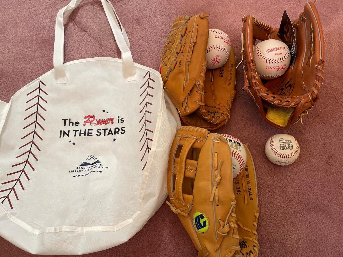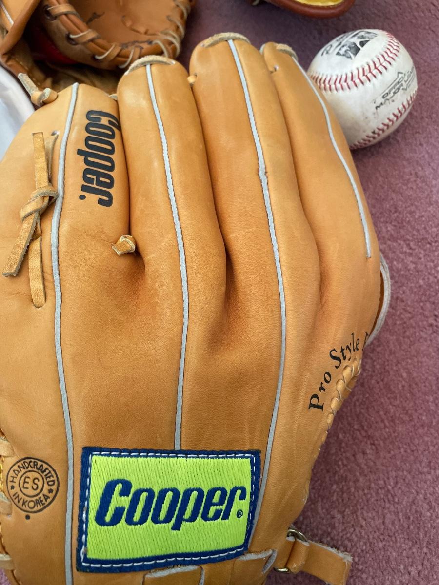 3 like new baseball gloves and balls