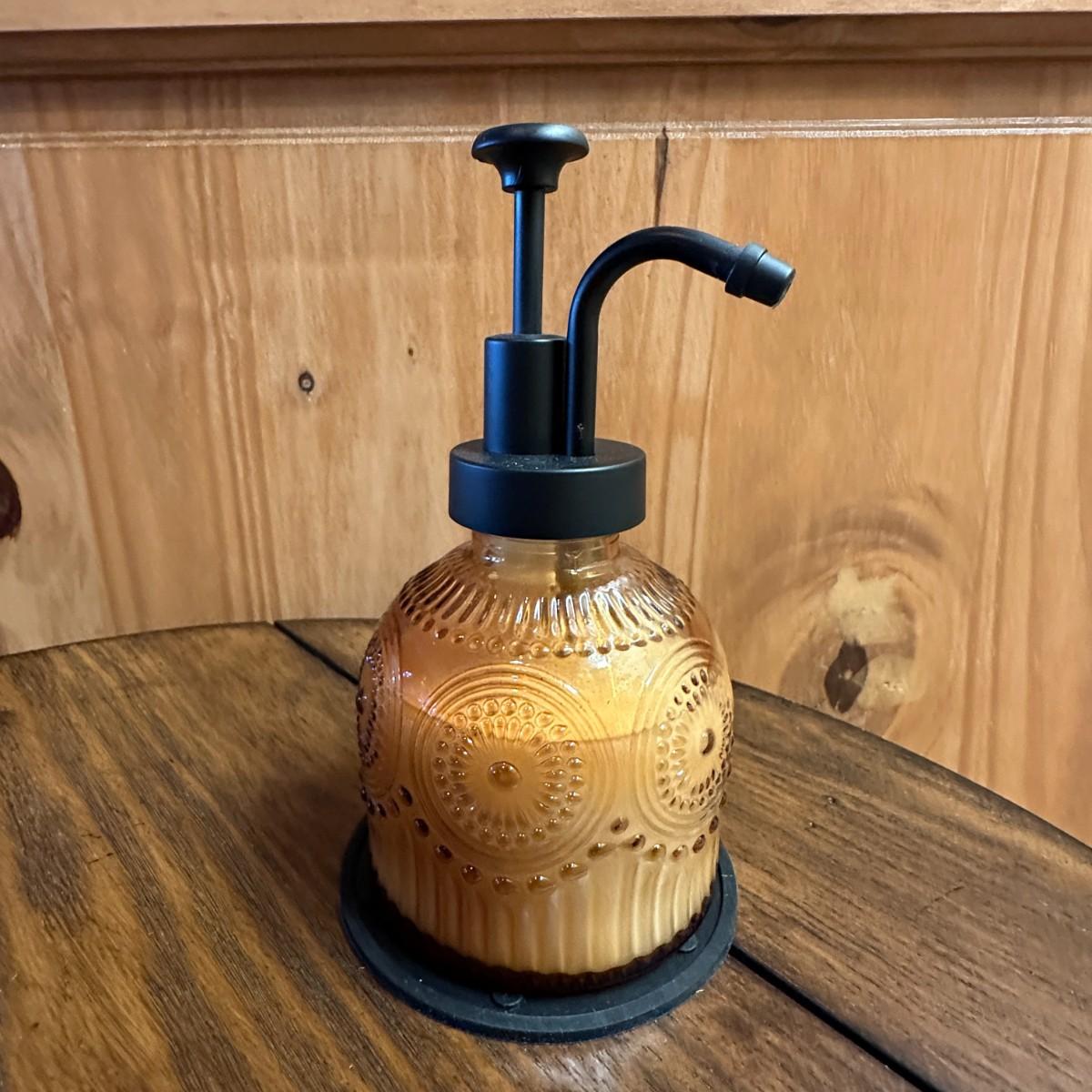 3 Bathroom Accessories- glass and ceramic soap pumps, glass jar with lid