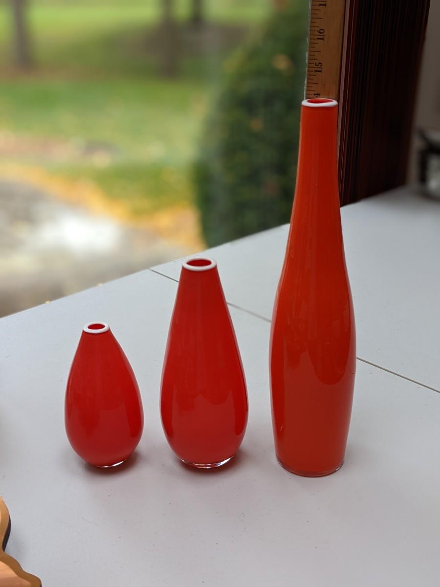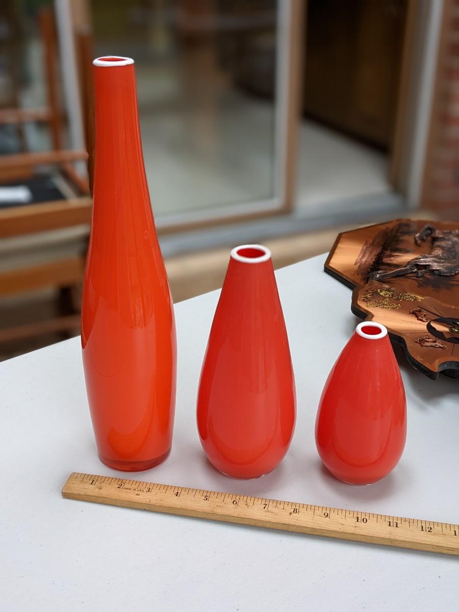 3 Beautiful and Rare Vintage Holmegaard Orange Vases