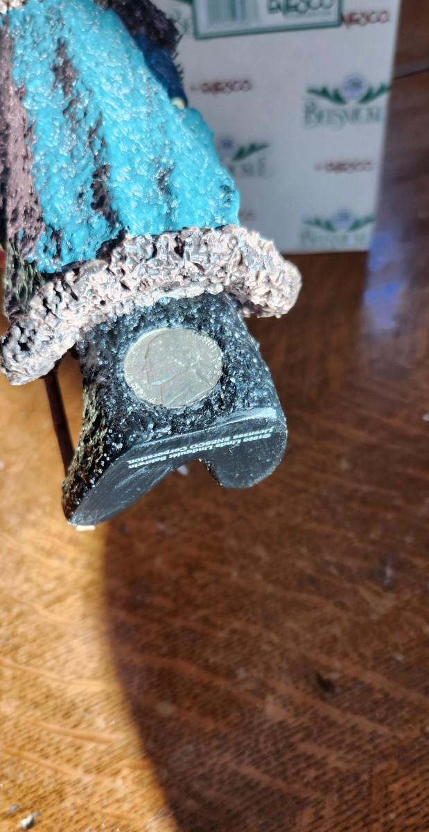 Interesting figurines with their boxes. The story on the little card explains the nickel....