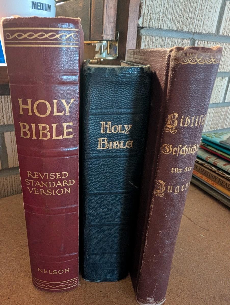 Three Bibles is good condition.