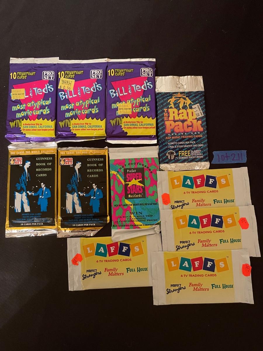 (3) Bill & Tedds most atypical movie cards, (1) The Rap pack, (2) Guinness Book of Records, (1) Super Star musicards, (4) Laffs TV cards.