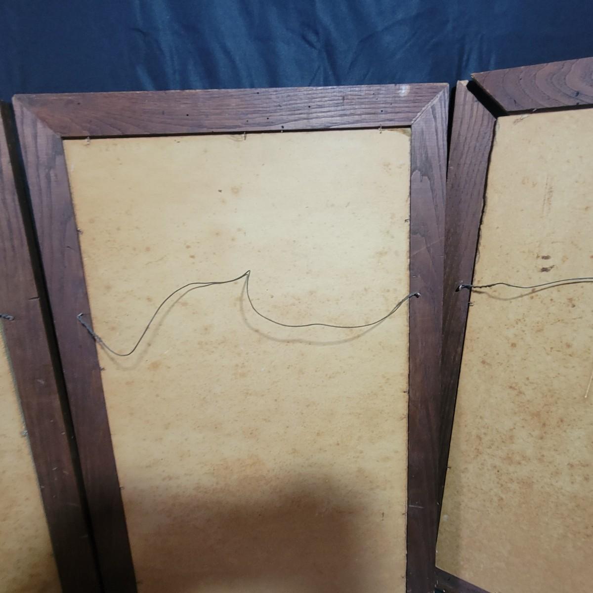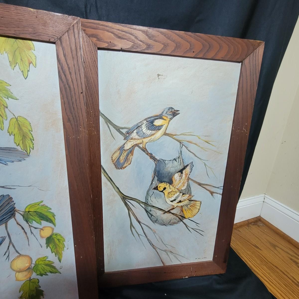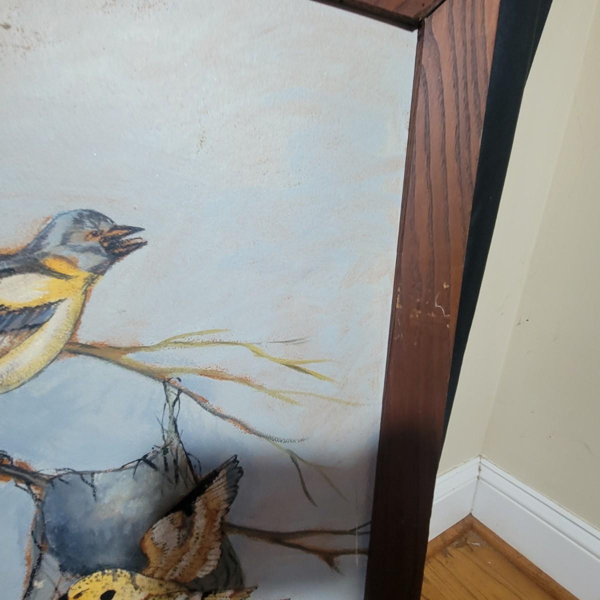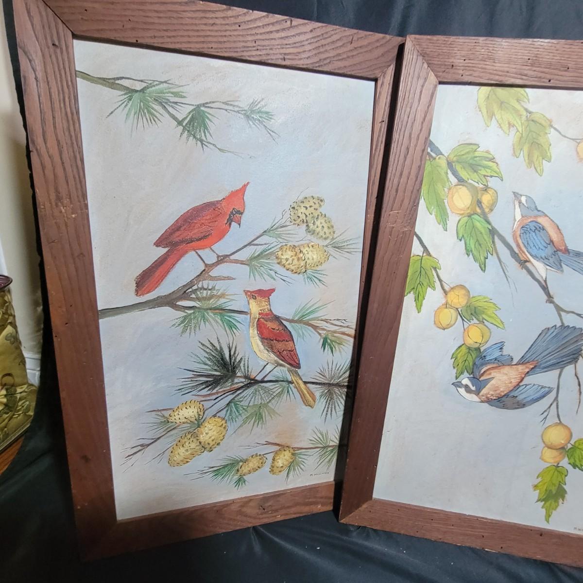 These appear to be originals in pastels on a board and sealed well. Frames are wormy oak and measure approximately 18" x 28" outside dimensions. 2 frames have damaged corners and all 3 have some surface damage. Shipping Available
