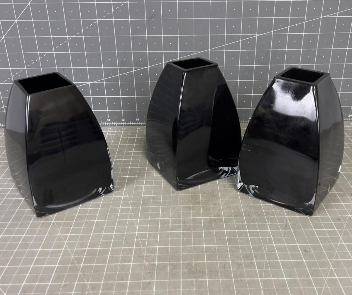 3 Black Glass Candle Votive or Vases, UNIQUE! GLASS