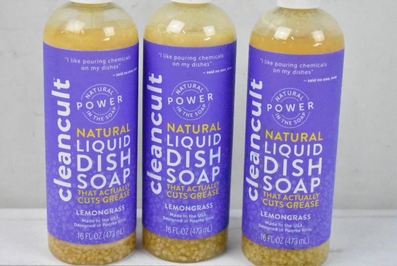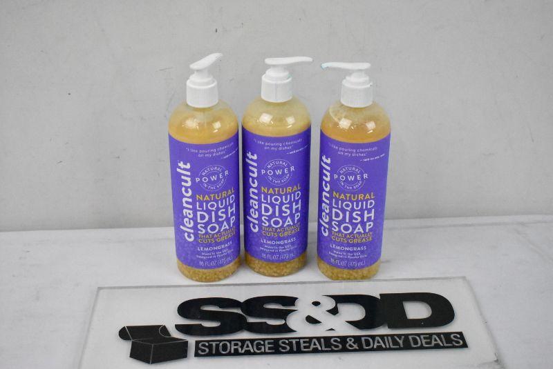 3 Bottles Clean Cult Natural Liquid Dish Soap "Lemongrass" 16 oz Each - New