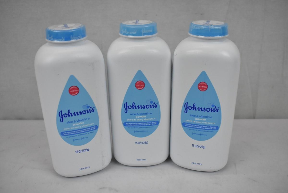 3 Bottles Johnson's Aloe & Vitamin E Powder, 15 oz each - New