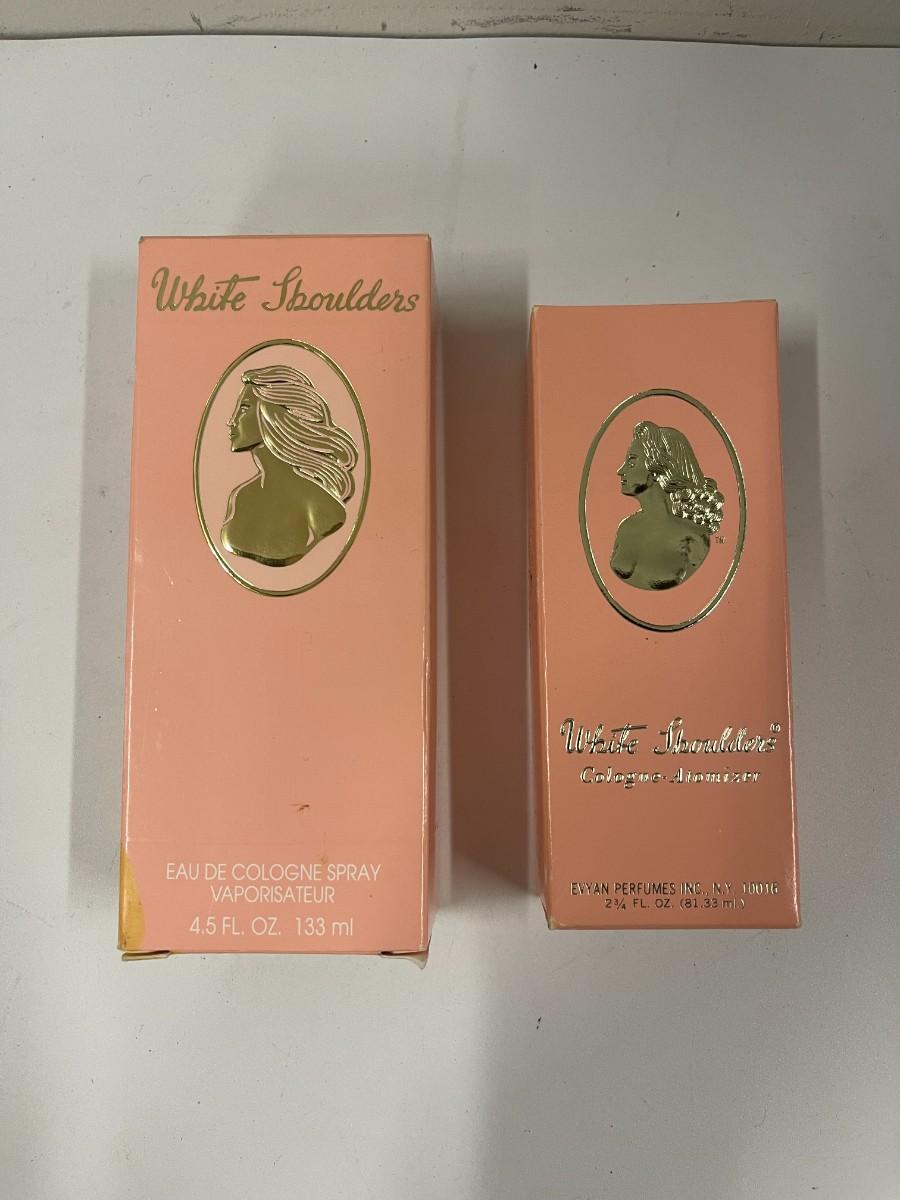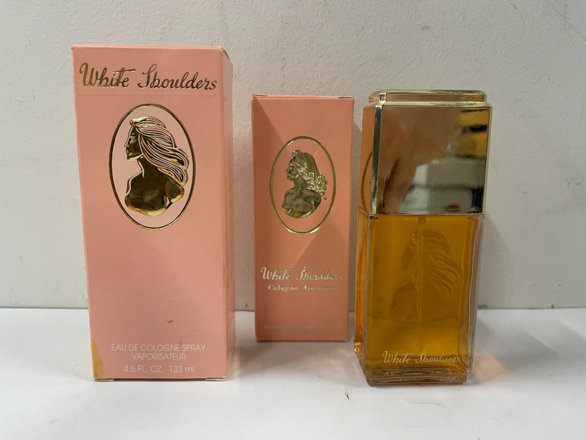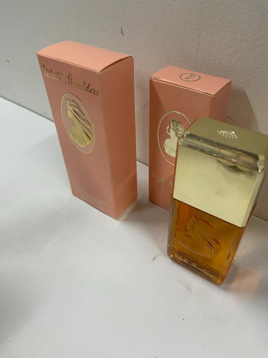 3 bottles of White Shoulders perfume, 2 of them are new in their boxes.