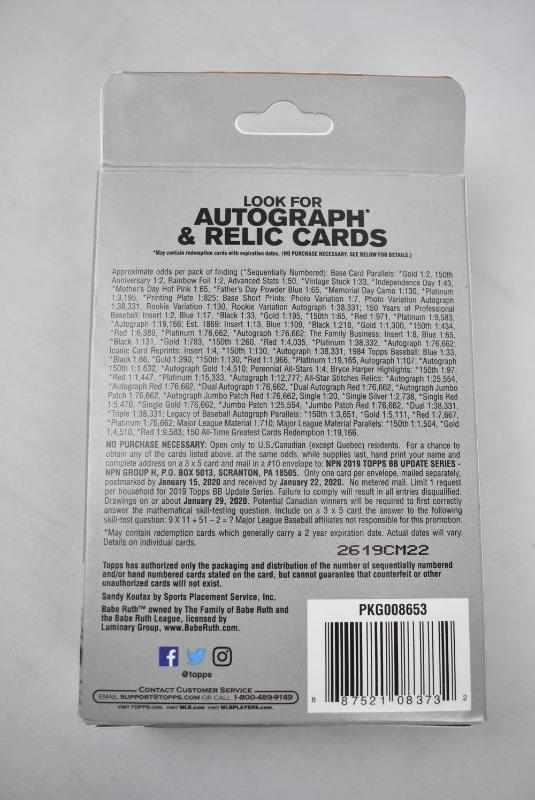 3 Boxes: 2019 Topps Updates Baseball Hanger Box- 2 Exclusive Bryce Harper Highlight Cards | 2 Perennial All Stars inserts - New