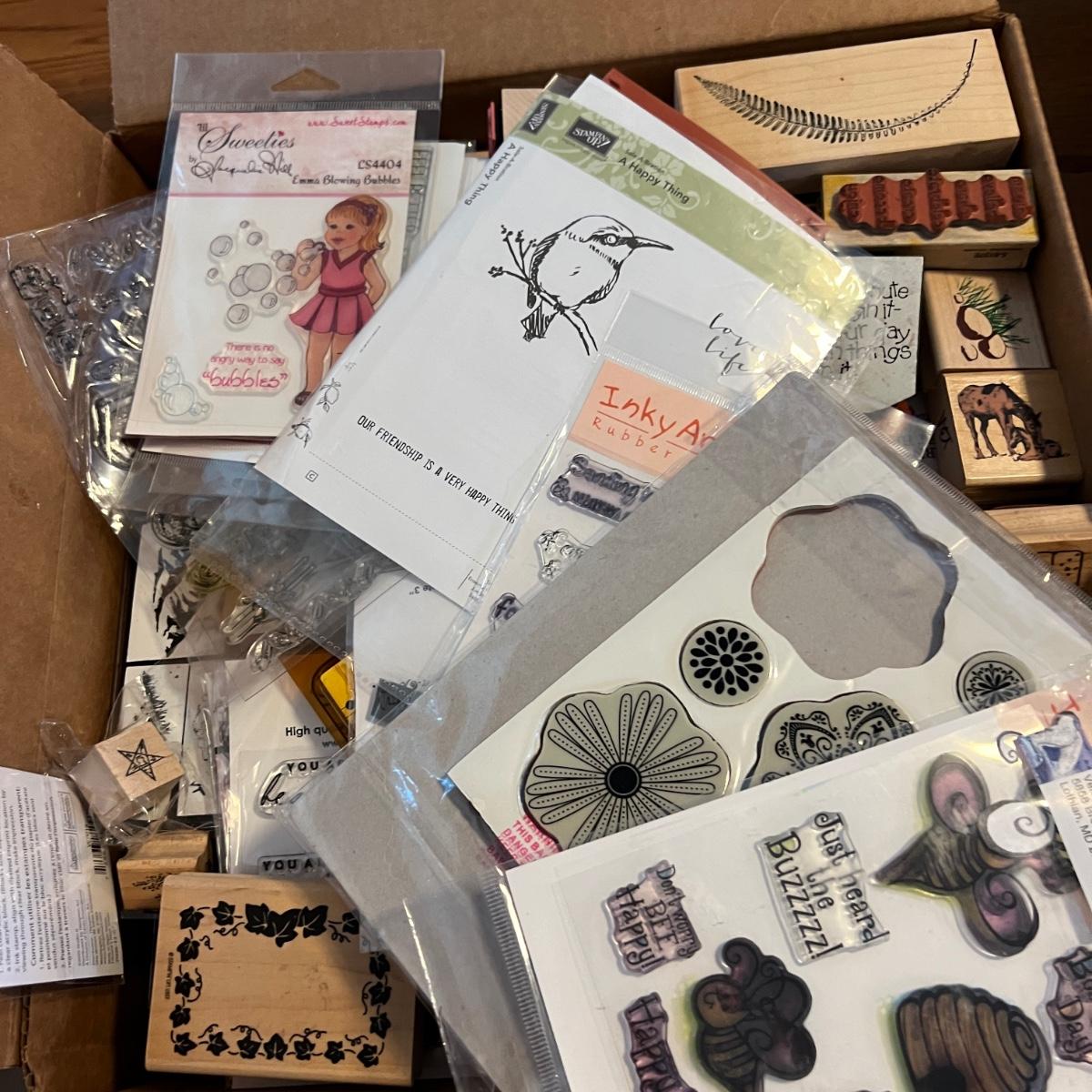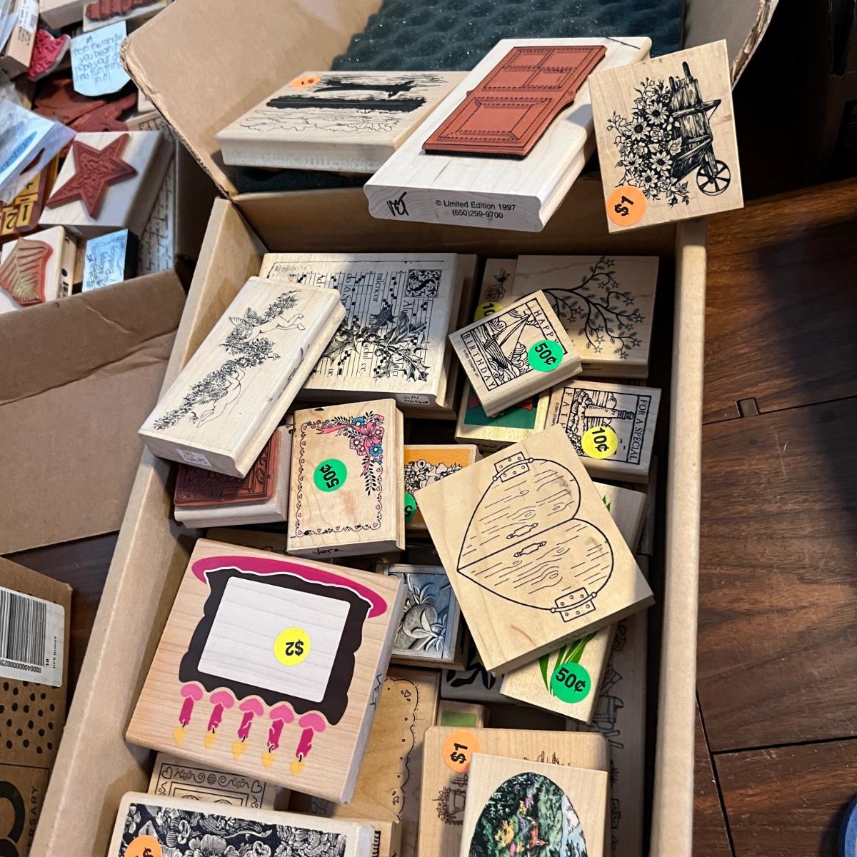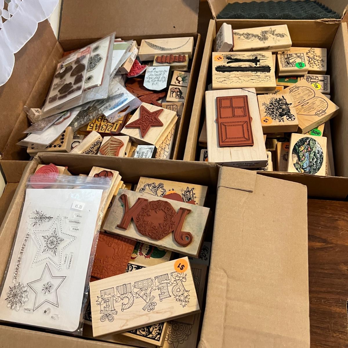 3 Boxes Full of Wood & Silicone Crafting Stamps