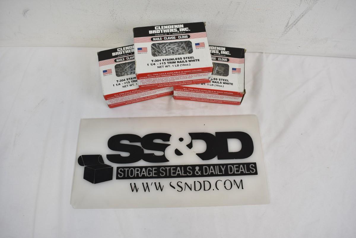 3 Boxes of Clendenin Brothers Stainless Steel Trim Nails - White