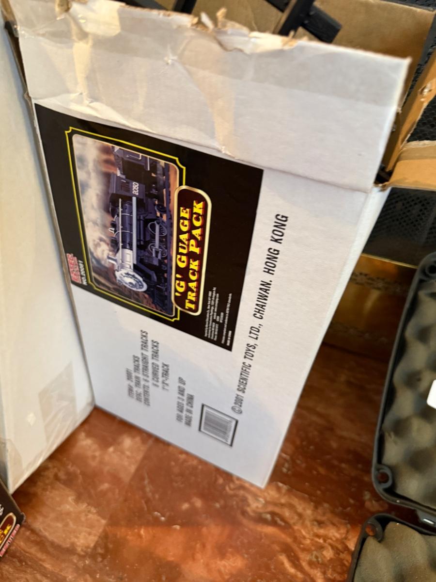2 boxes of extra track and all included as shown ‘G’ Gauge. Not sure if all is new or not