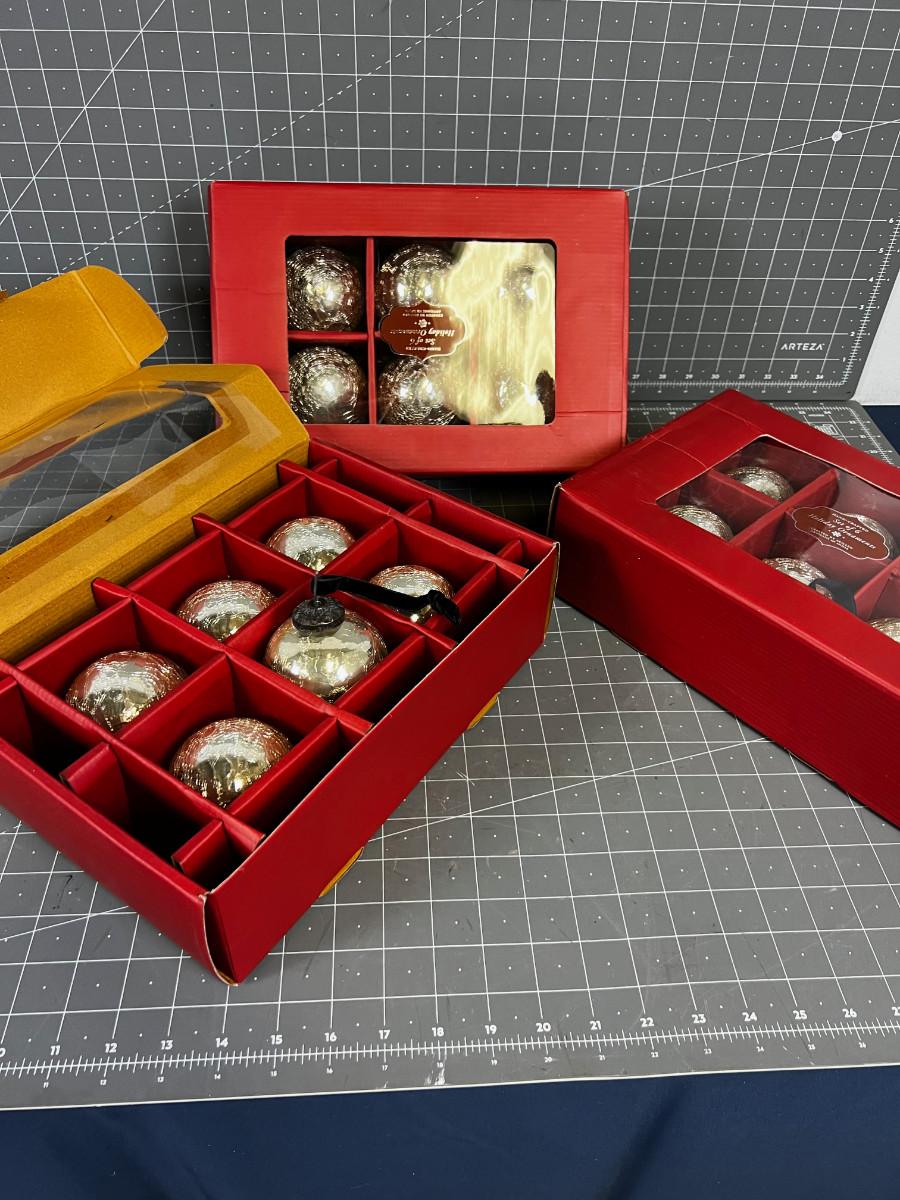 3 Boxes of New, Sets of 6 Hand Made Mercery Glass Ornaments