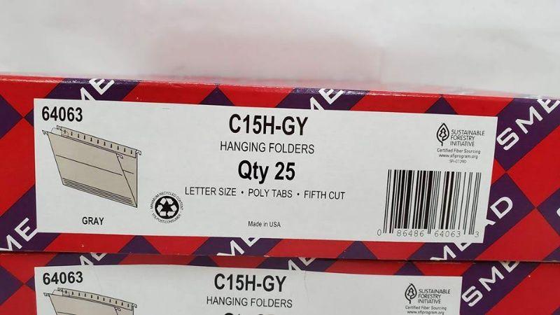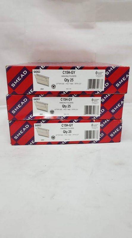 3 Boxes Smead Hanging File Folder with Tab, Letter Size, Gray, 75 Total - New