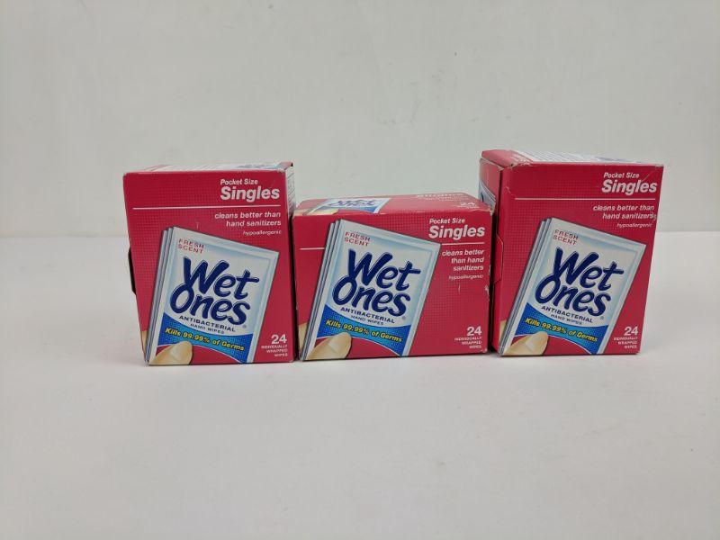 3 Boxes Wet Ones Singles Pocket Size, 3 Boxes of 24 Each, Fresh Scent - New