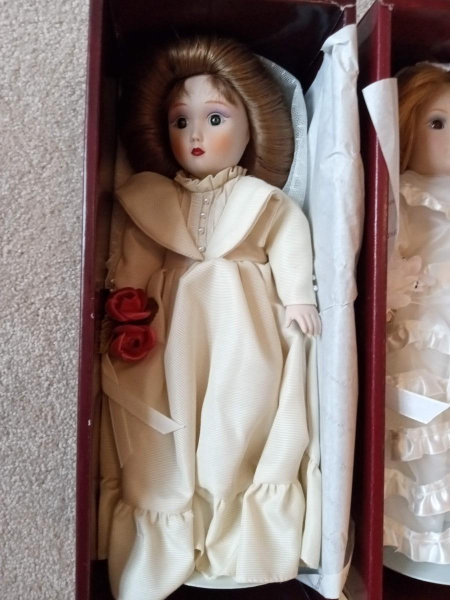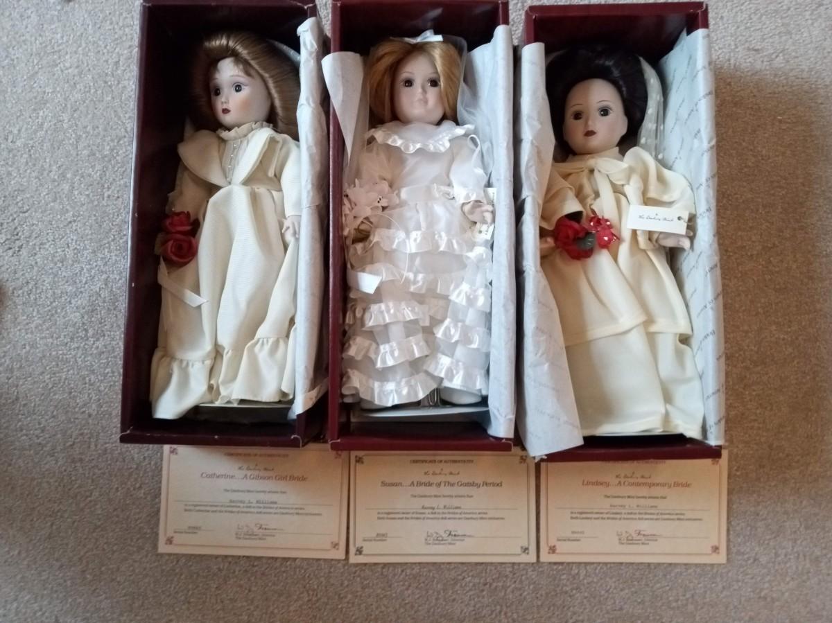 3 BRIDES OF AMERICA PORCELAIN DOLLS WITH CERTIFICATES