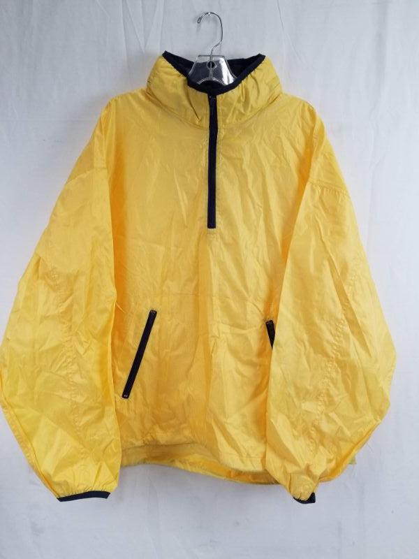 3 Bright Yellow Nylon Pullover Jackets with Ventable Collars: 1 Large and 2 XXXL
