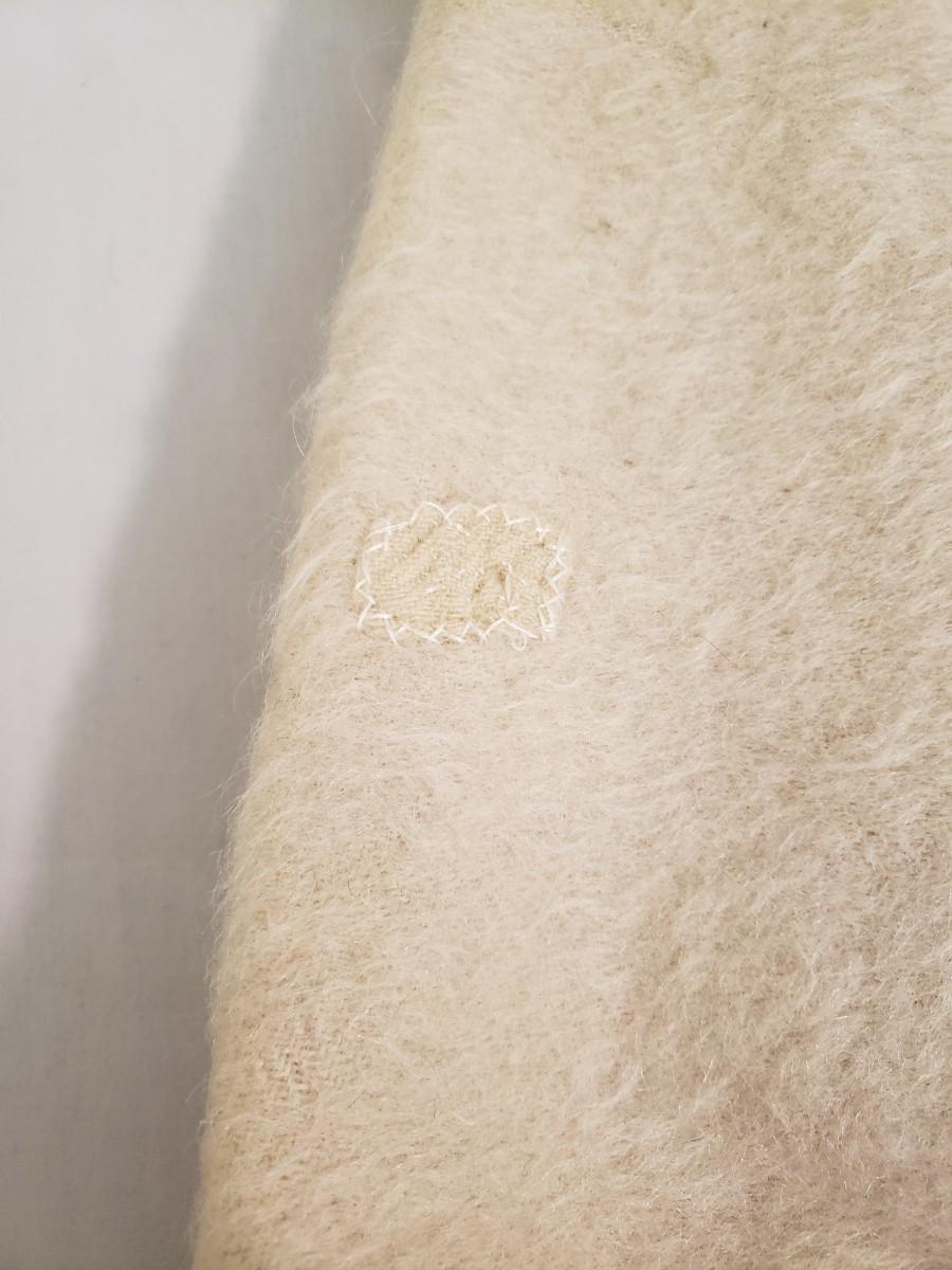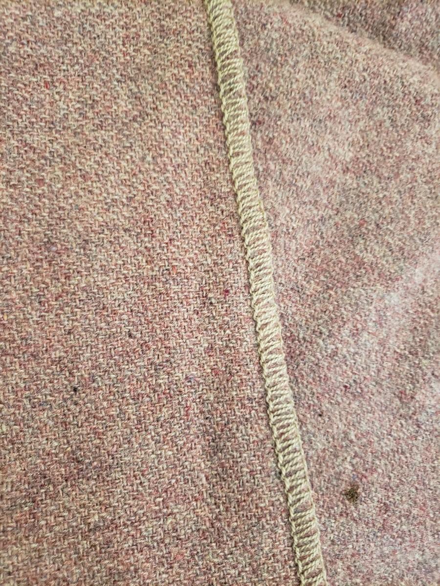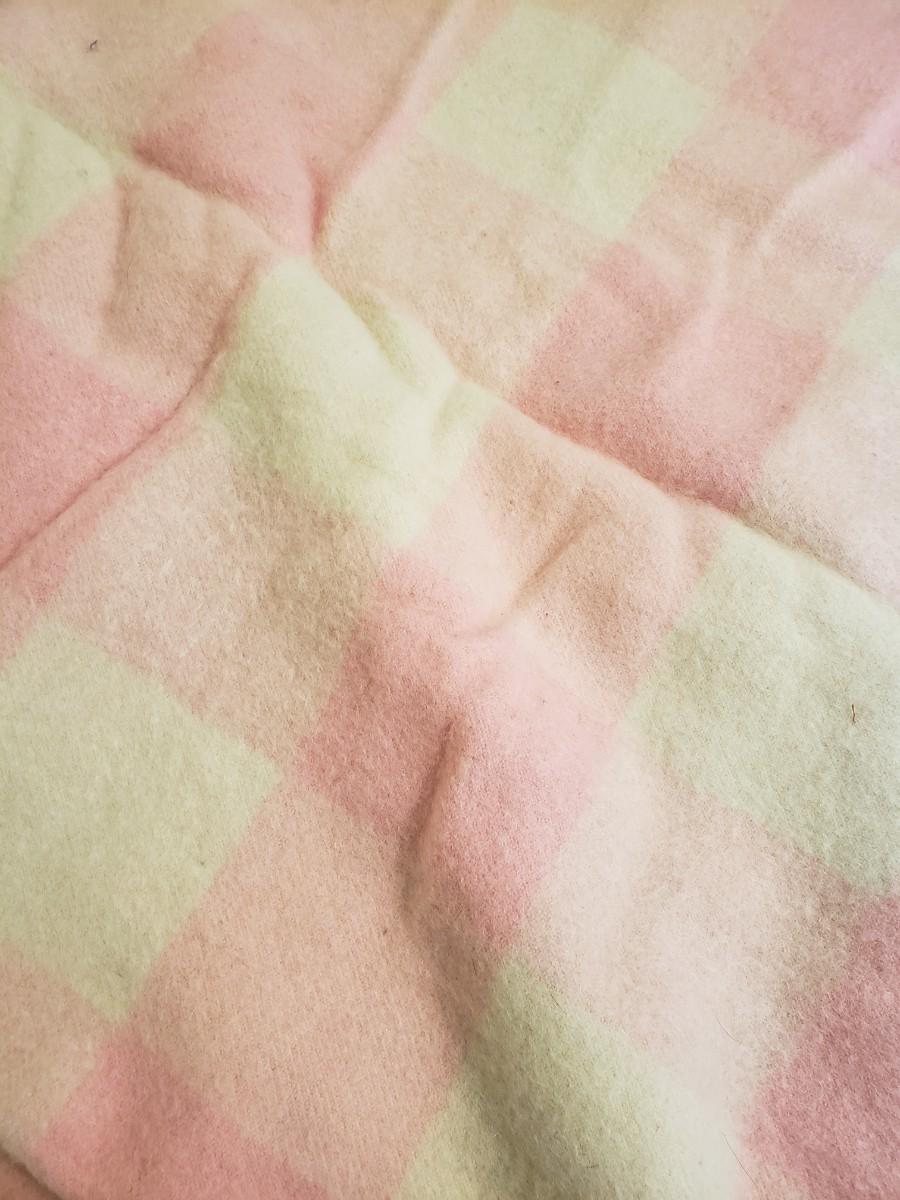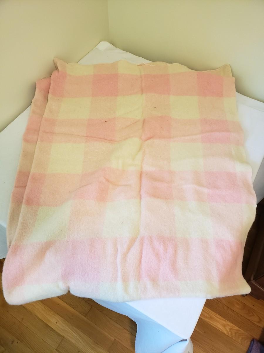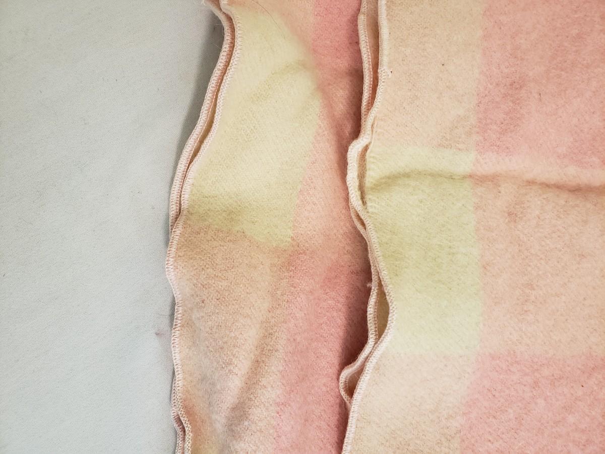 The pink and white checkered wool blanket would be perfect on a cold day! The blanket measures 62"x80" and appears to be in good condition. The Kenwood Mills Purple wool blanket measures 62"x80" and also appears to be in really good condition. The last wool blanket is a cream color with green, yellow, red and black stripes by Hudson's Bay Company on each side of the middle. This blanket does have 2 patched spots as seen in the pictures, yet would keep you cozy warm. This measures 62"x80". Shipping available.
