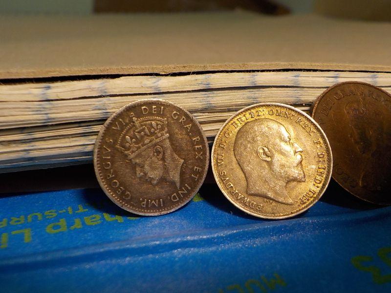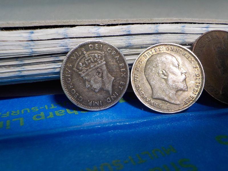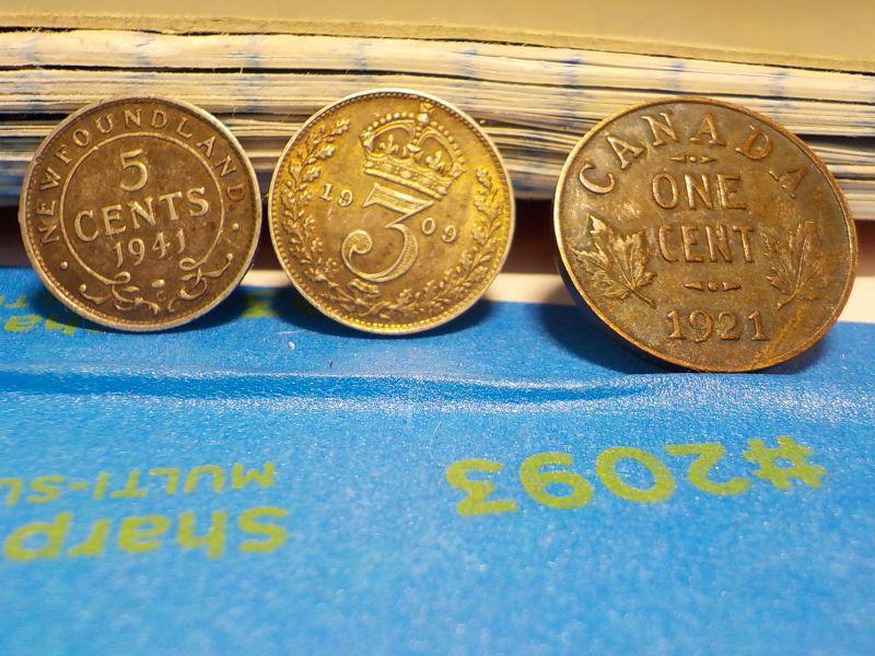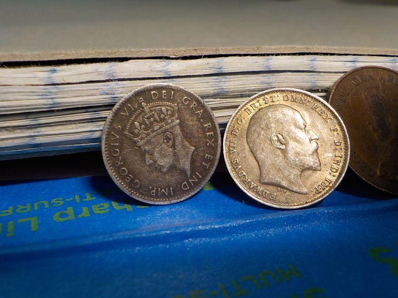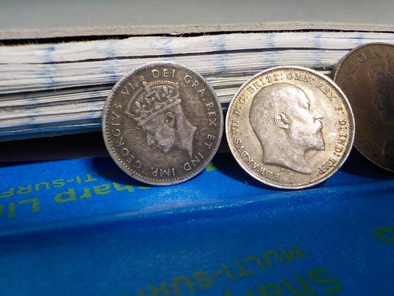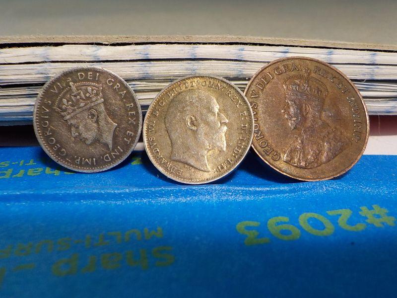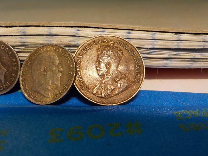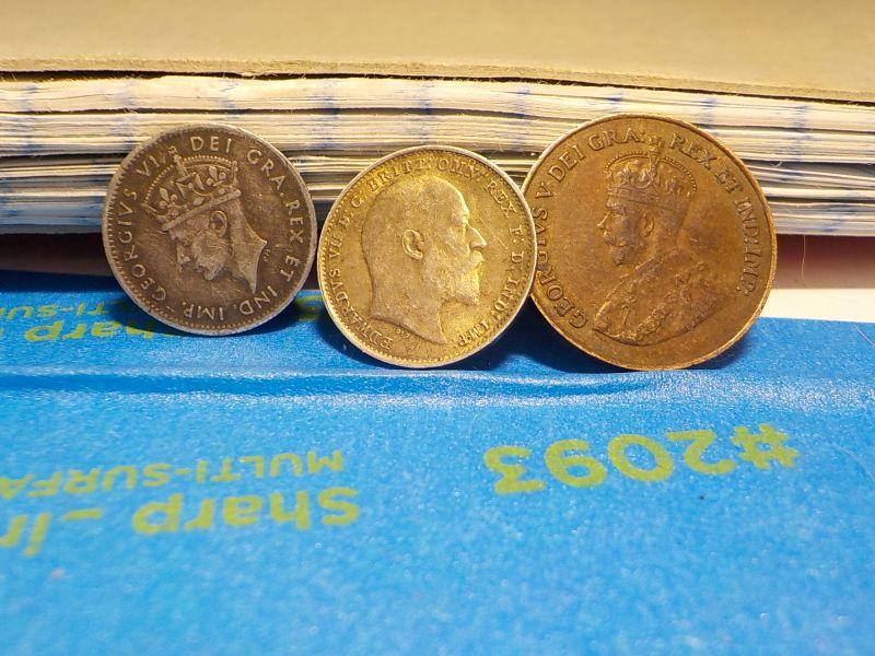 3 British coins king George V1-1941 5 cent/1909 3 cent/ 1921 one cent.