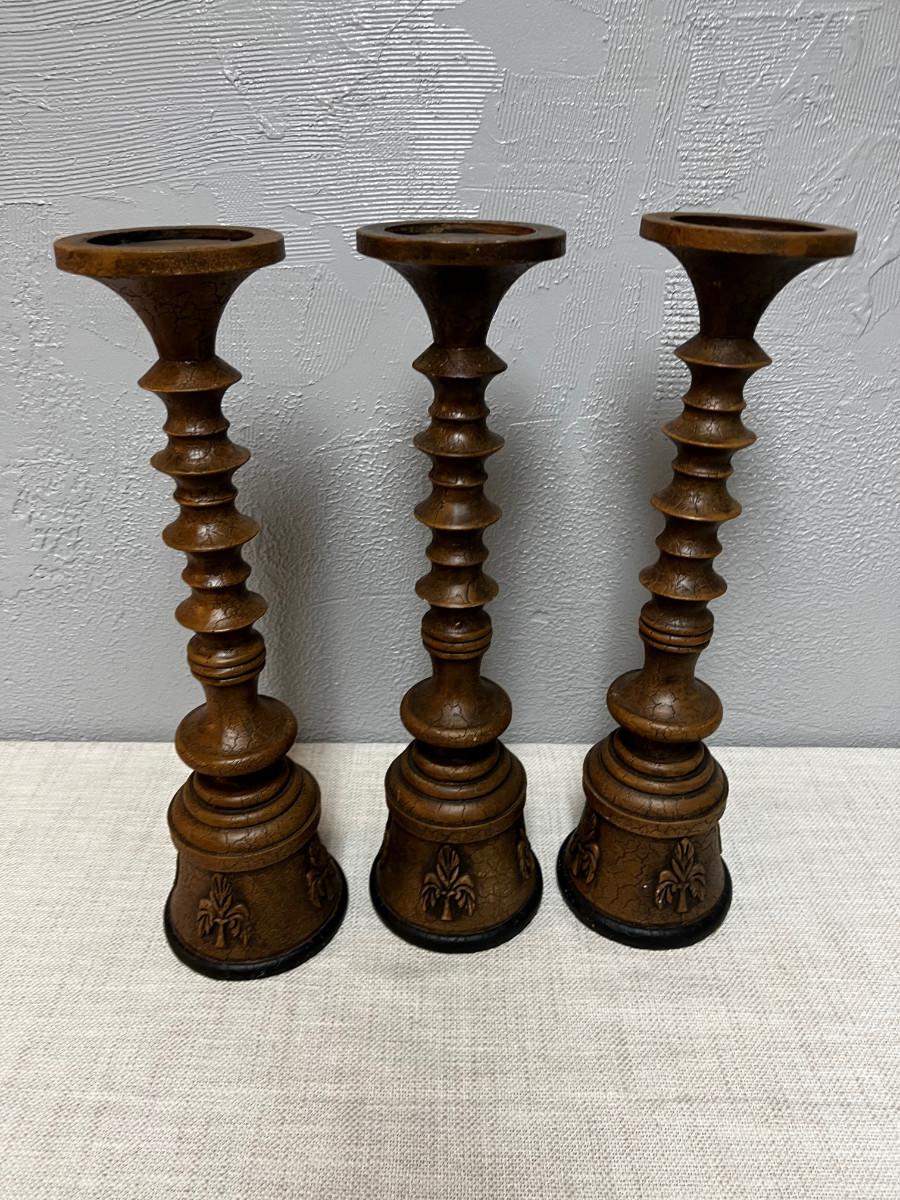 3 Brown Resin Candle Sticks