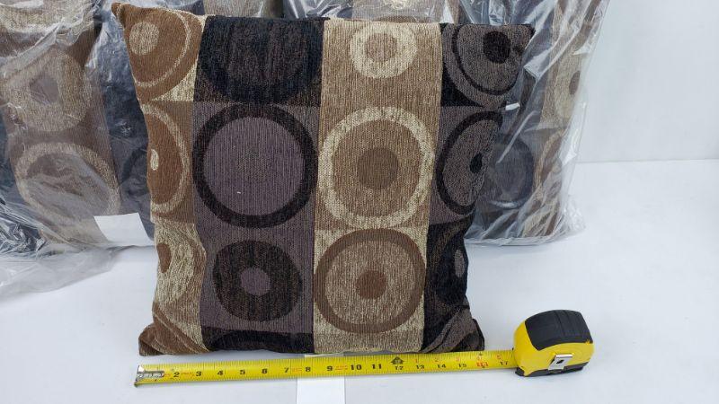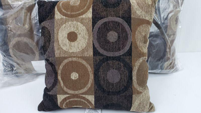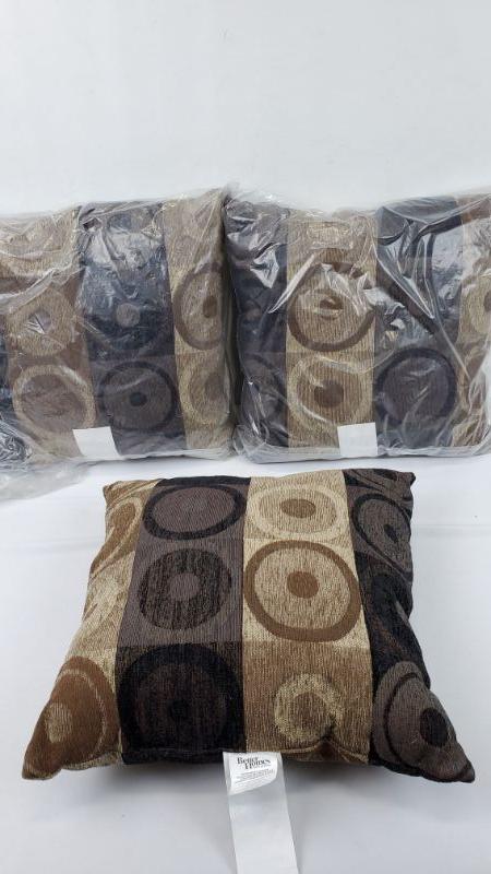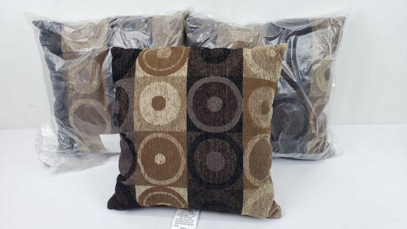 3 Brown Throw Pillows, 18x18 in, Tan/Brown/Black - New