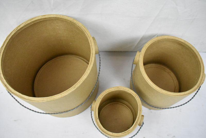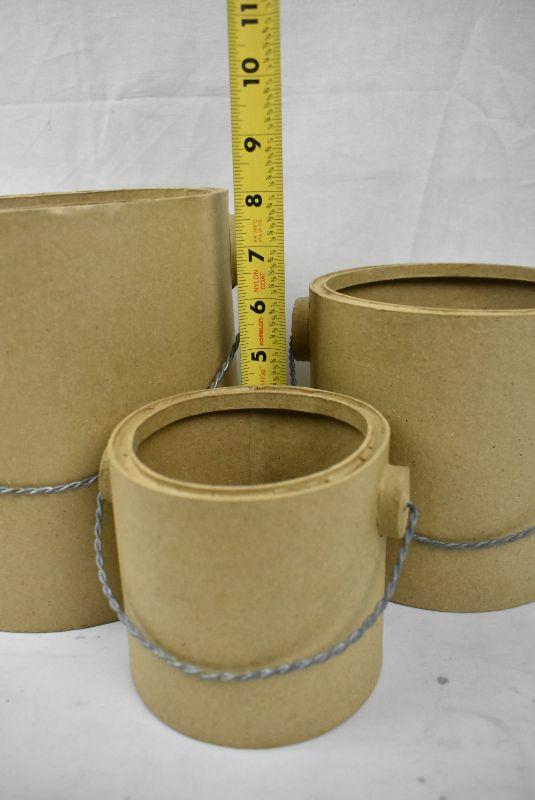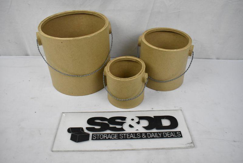 3 Bucket Style Chipboard Containers with Lids, Nesting - New