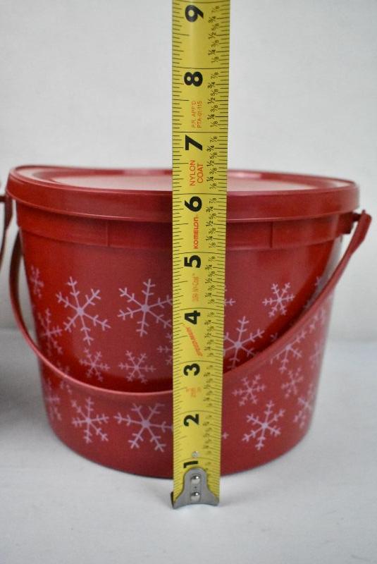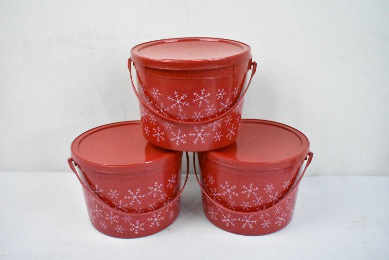 3 Buckets with Lids: Red with White Snowflakes, 1 Gallon Each - New