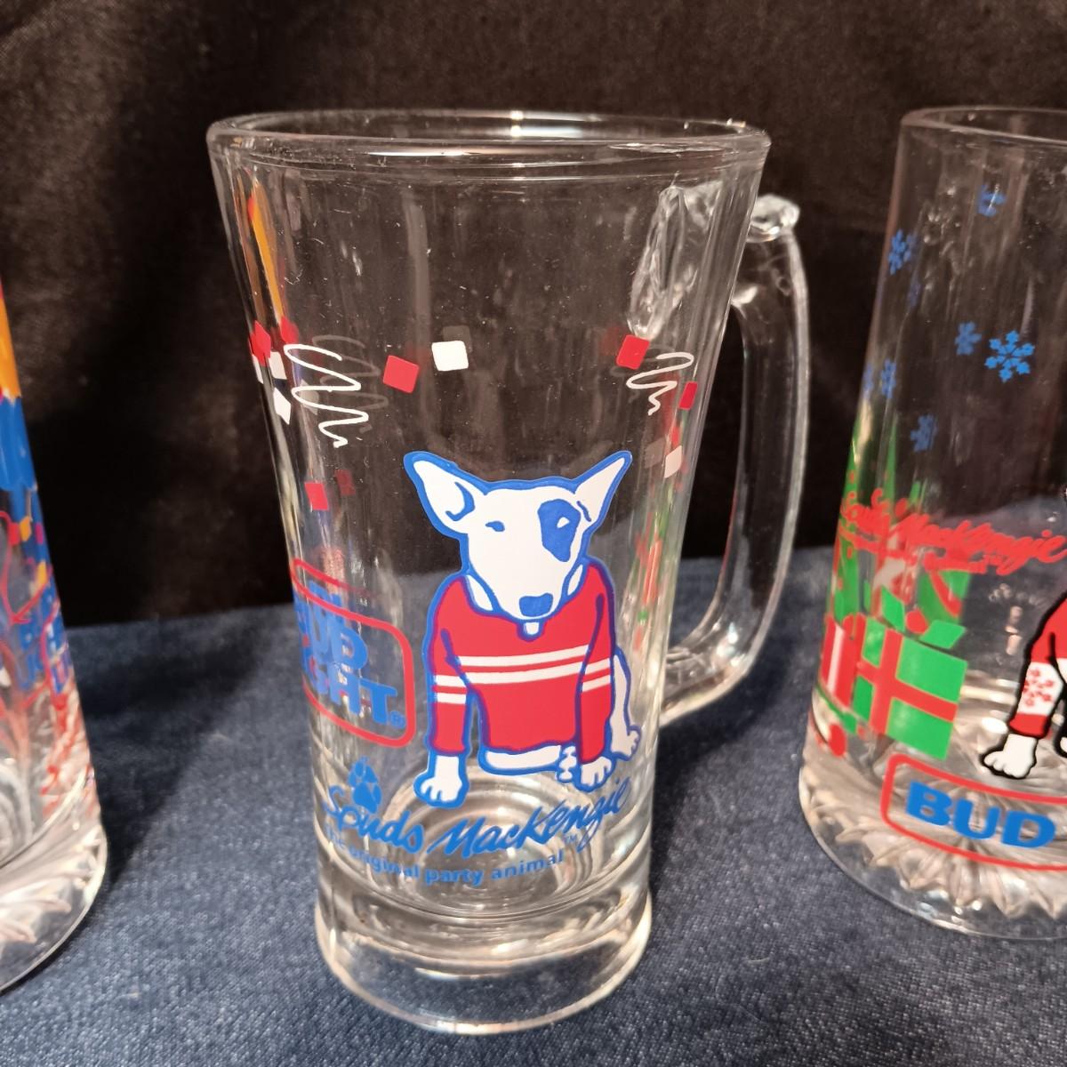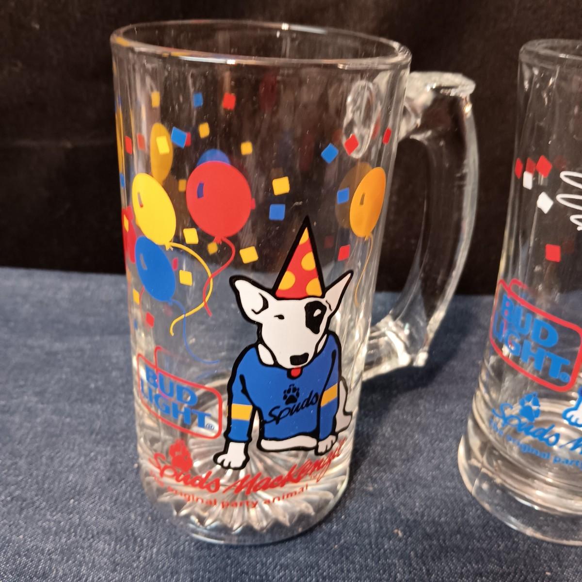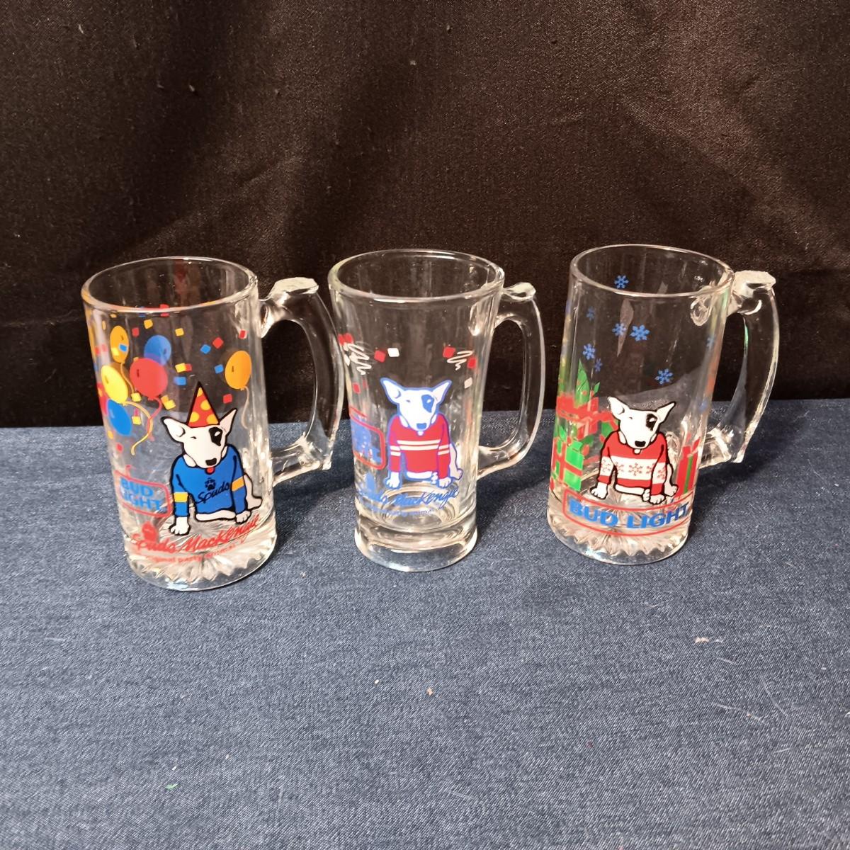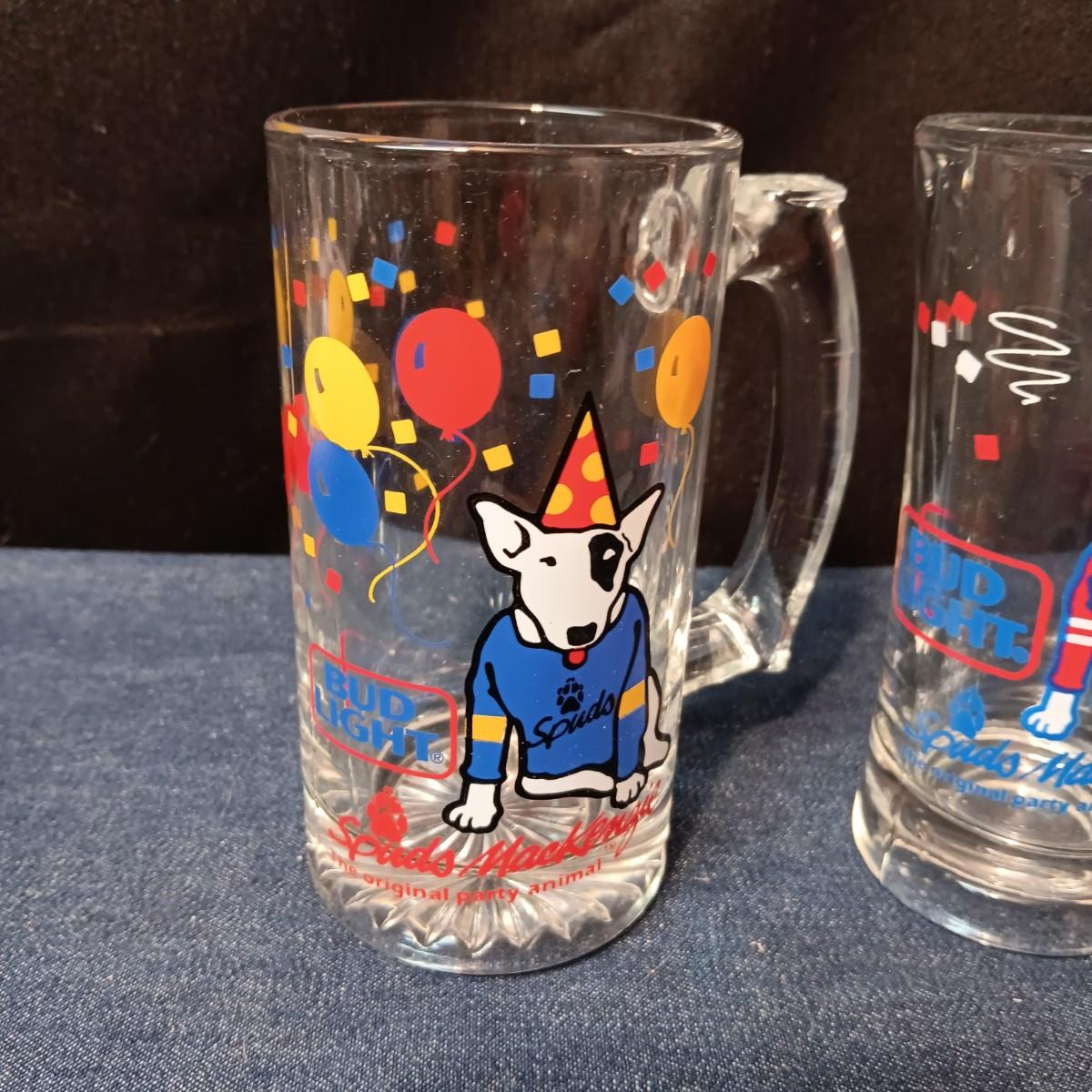 3 BUD LIGHT SPUDS MACKENZIE BEER GLASSES