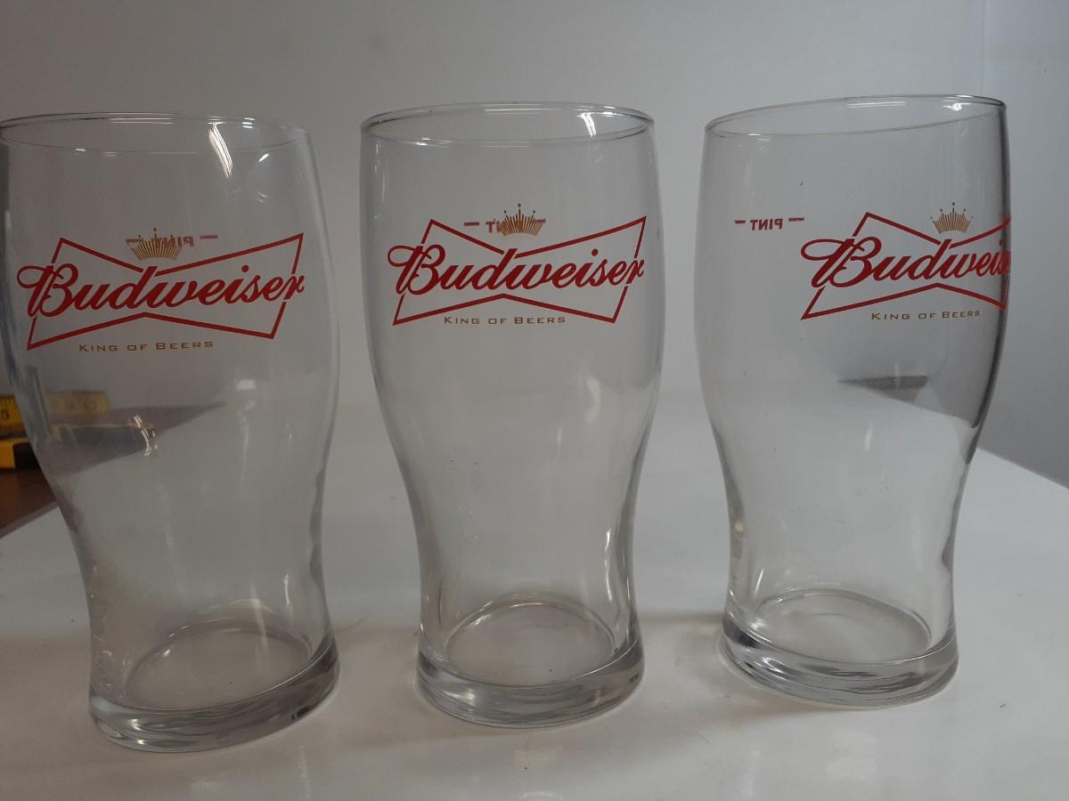 3 Budweiser pint Beer Glasses