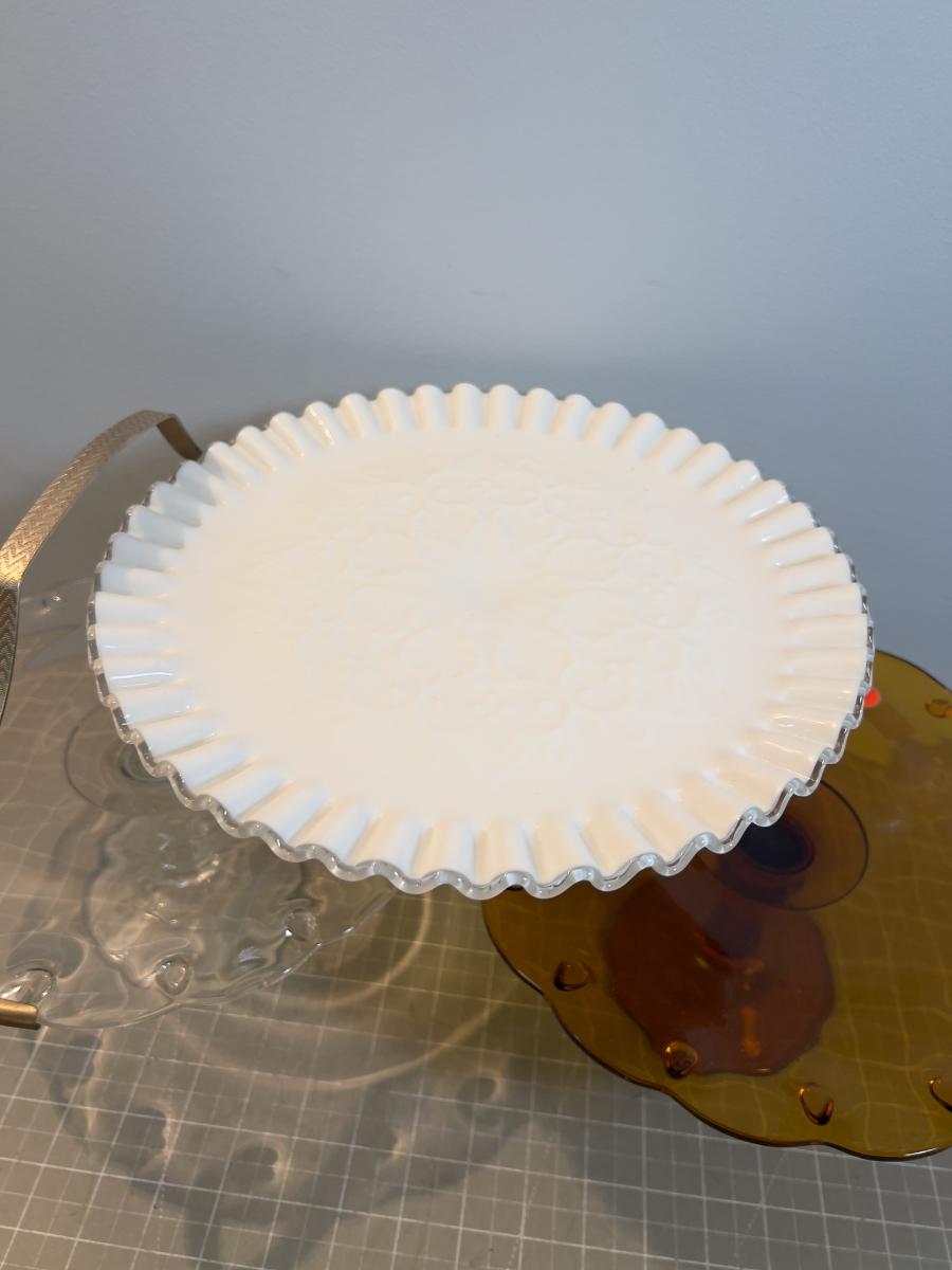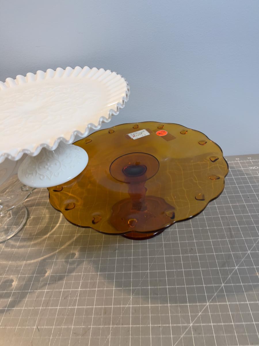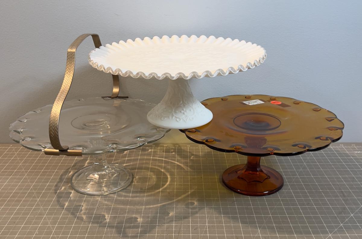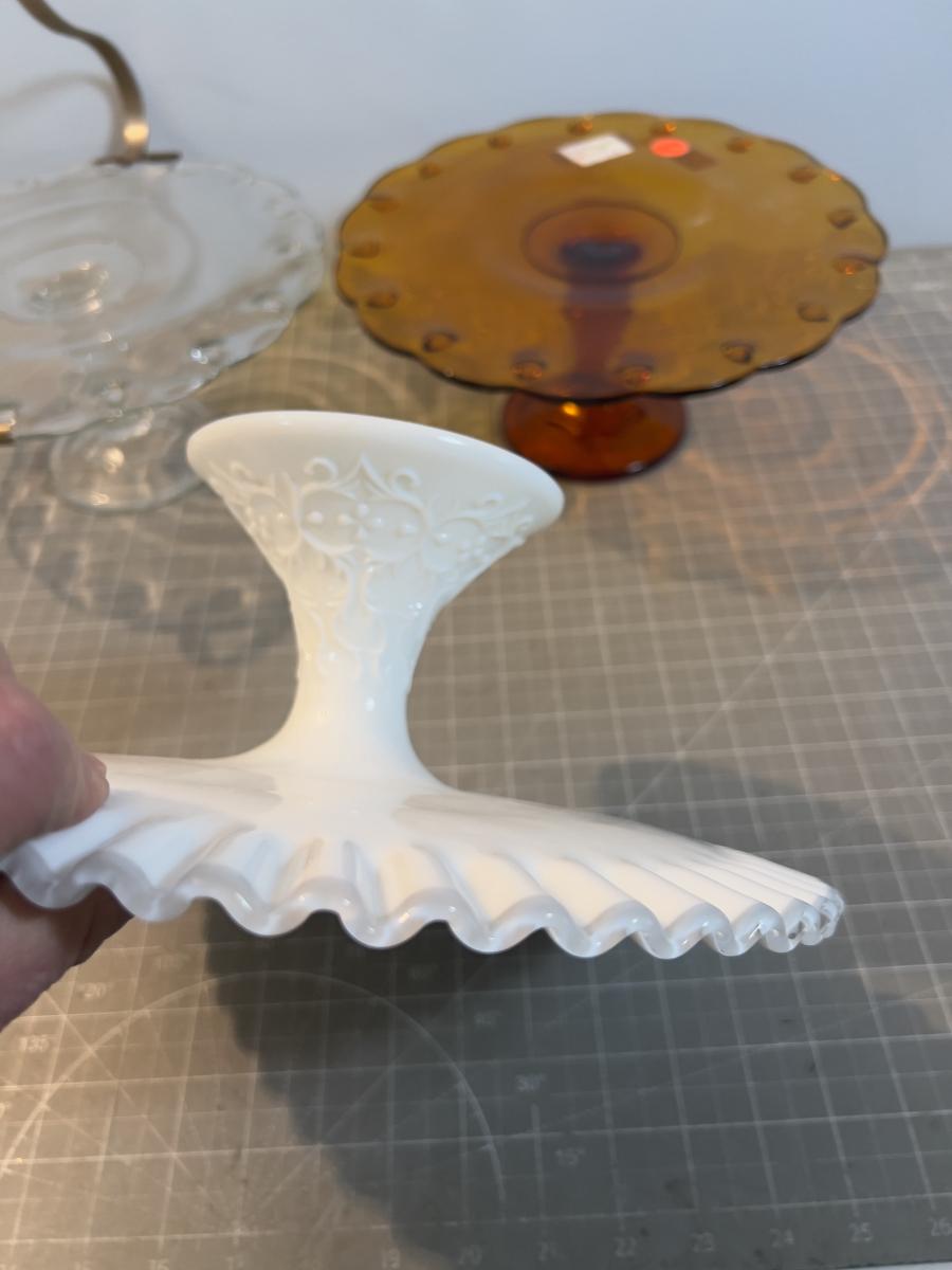 Lovely One Amber, One Milk Glass and One with a metal handle. (3) All Old Vintage Glass.