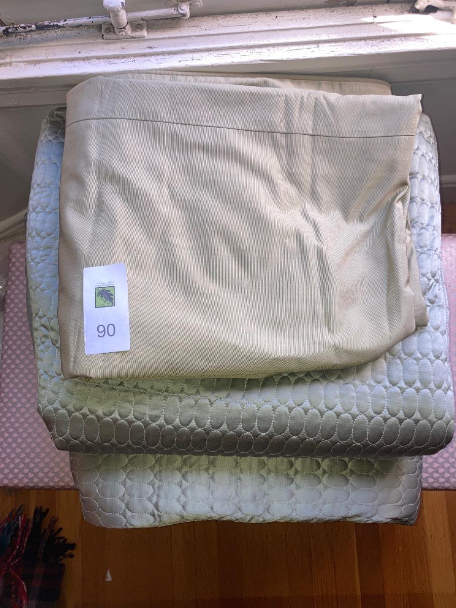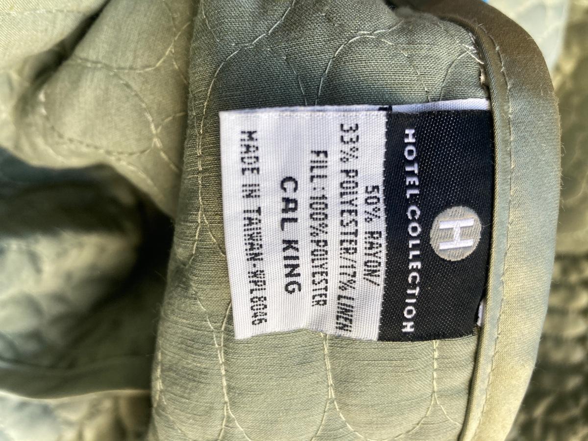 3 Cal king bedspreads all in like new condition and light green in color. 2 are identical to each other the 3rd matches in color.