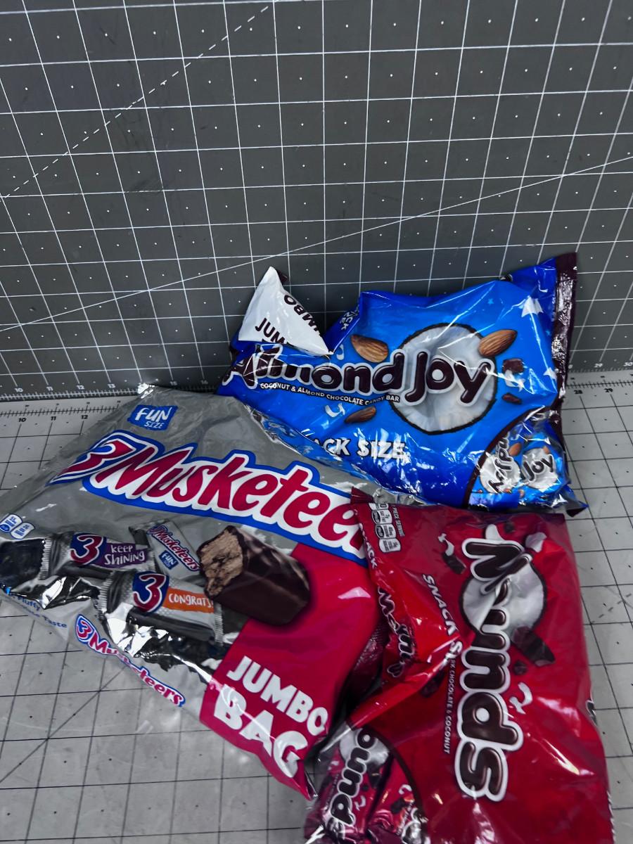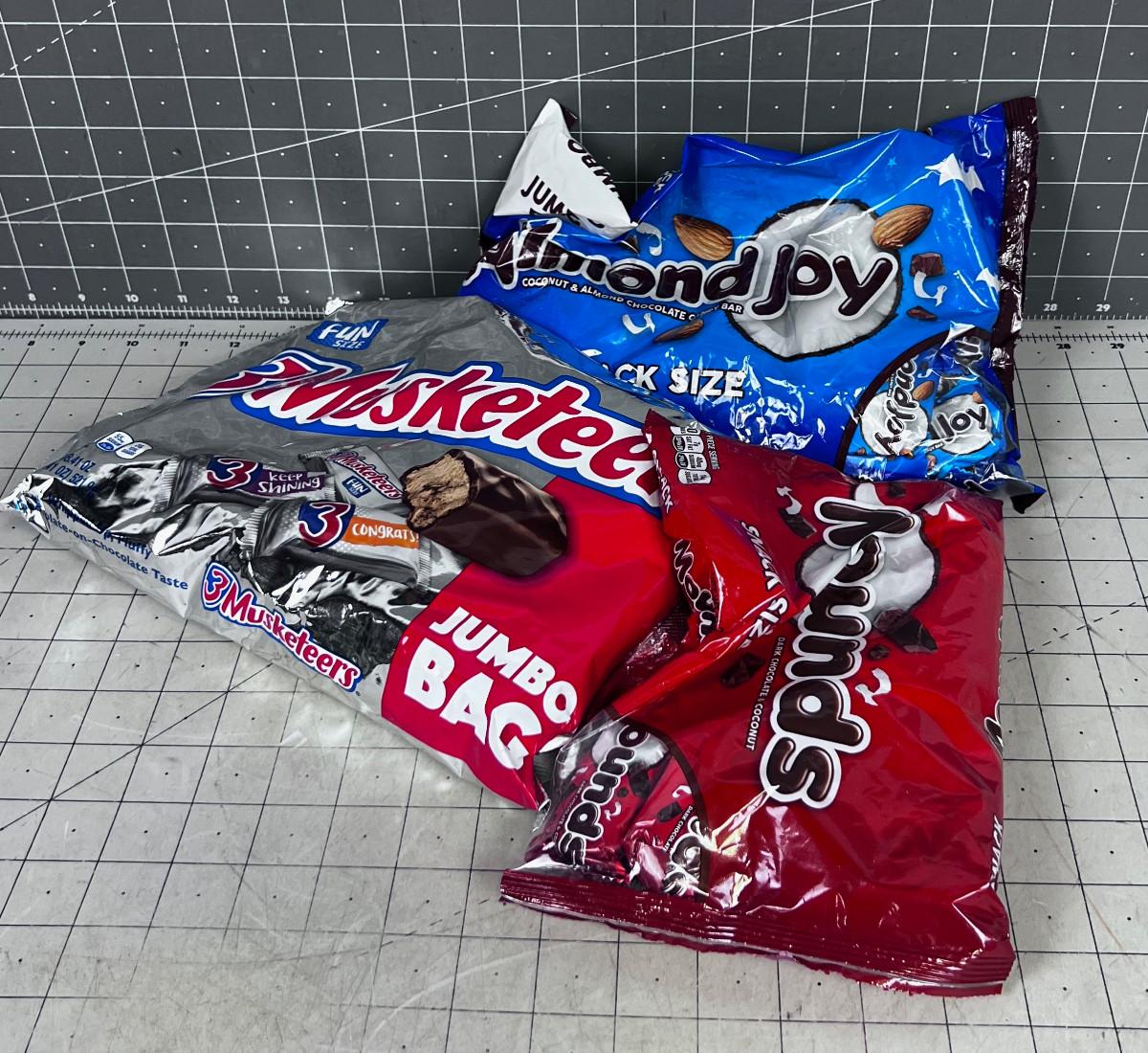 3 Candy Bars; Almond Joy, Mounds, and 3 Musketeer BARS