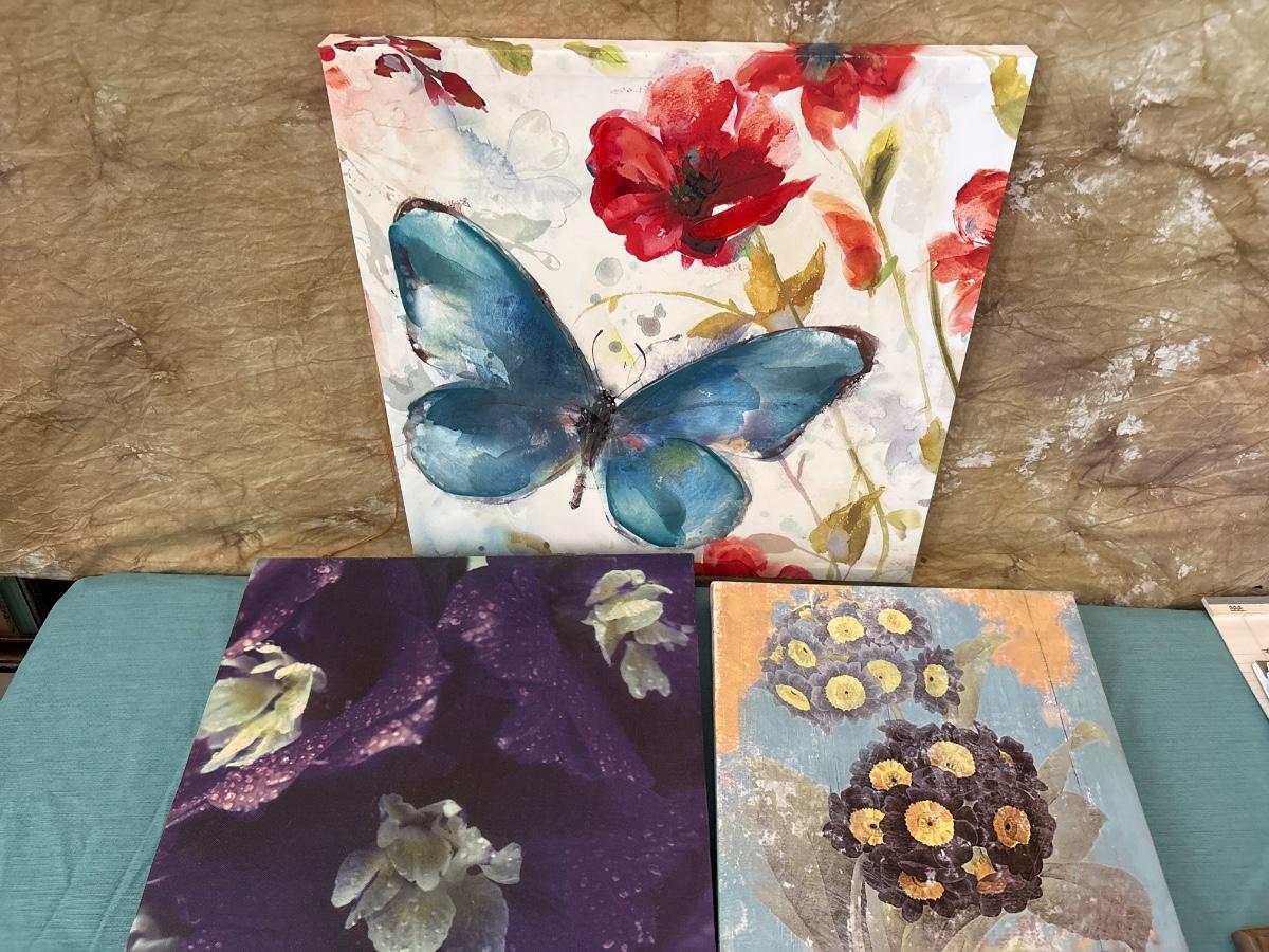 Butterfly 17 1/2 x 17 1/2, purple 15 x 15, small 12 x 12