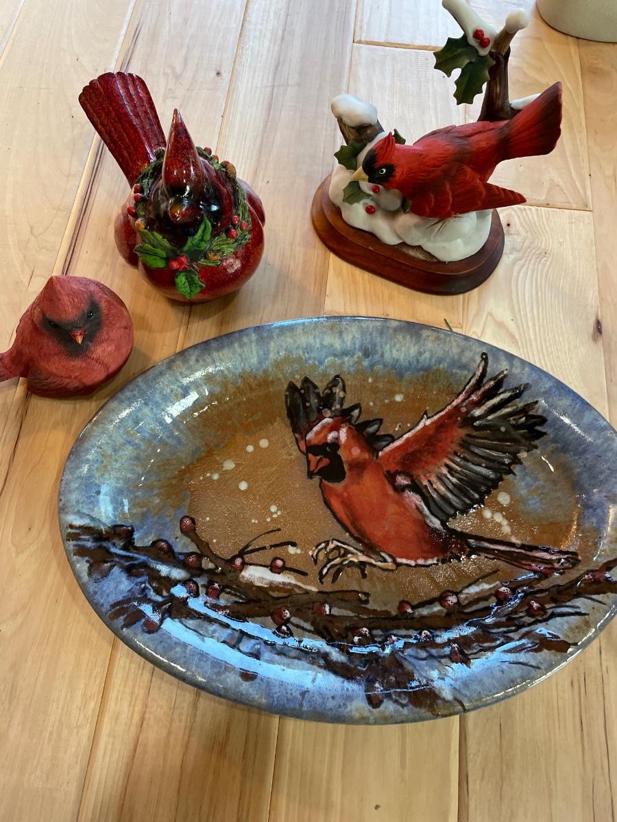 3 cardinal decor and pottery plate