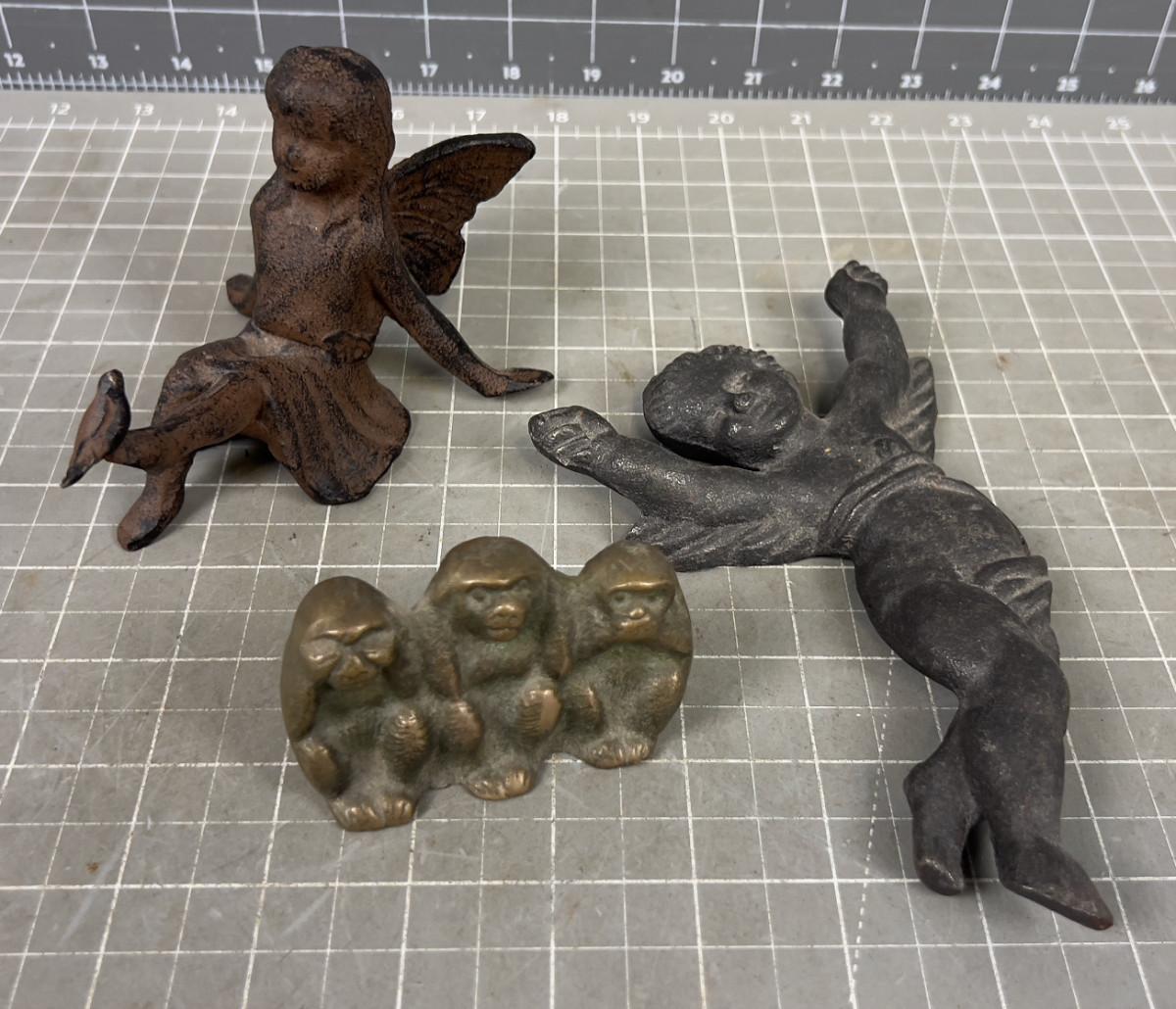 3 Case Iron Metal; Angel, Fairy and Brass Monkeys