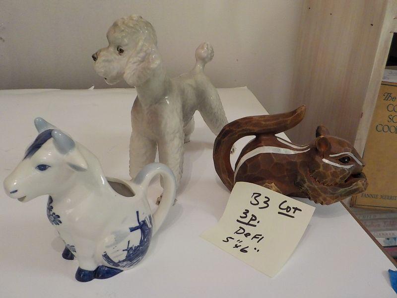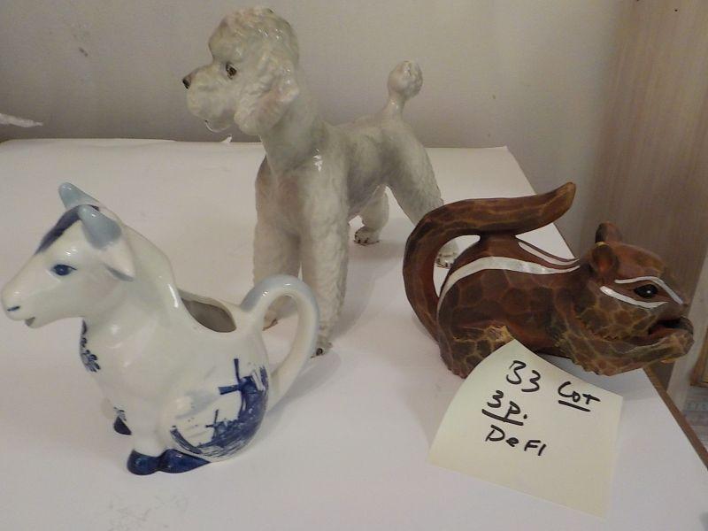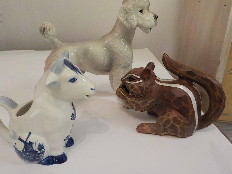 Delft cow and poodle and chip monk . size 5 x 6. each.