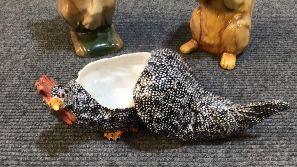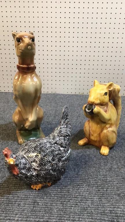 Greyhound pitcher 15 inch tall..Squirrel pitcher 10 inch tall, Made in Italy..Speckled Hen Tureen by Vietri