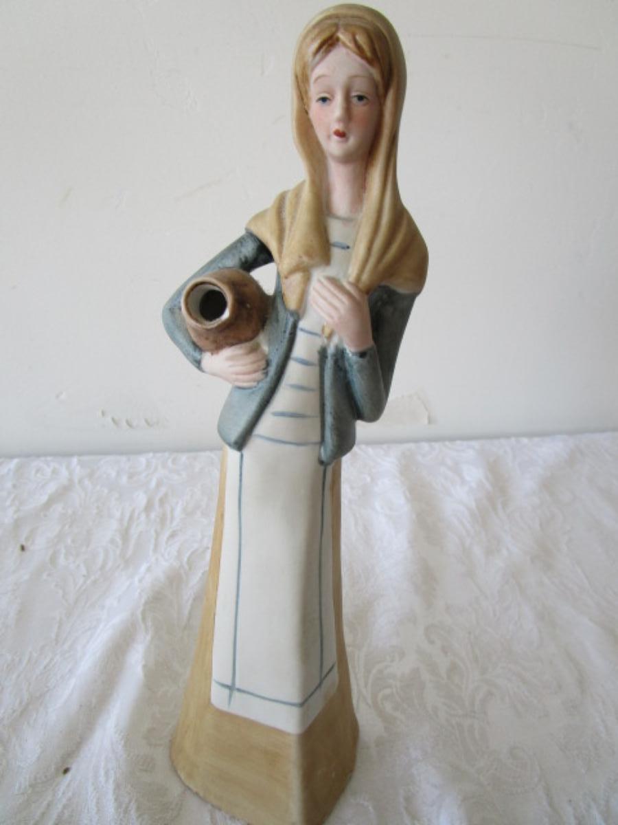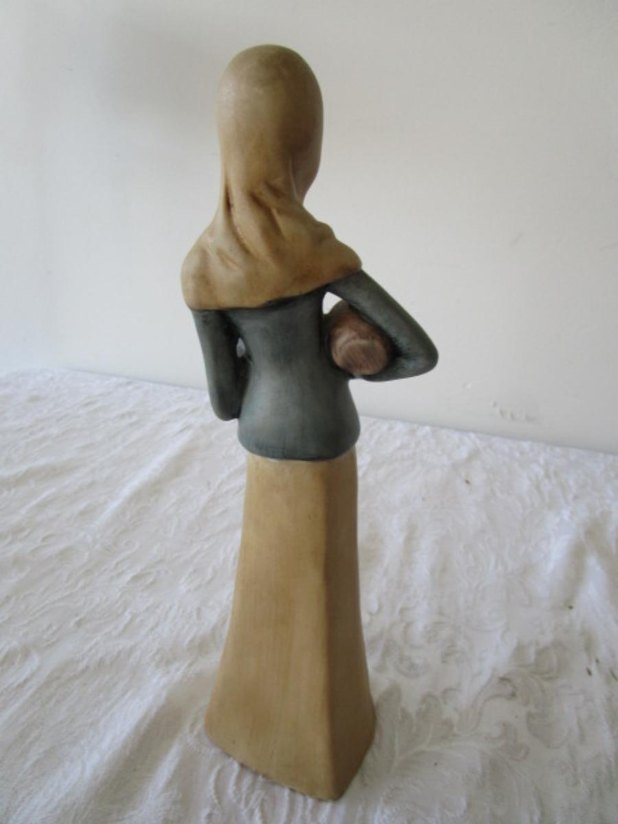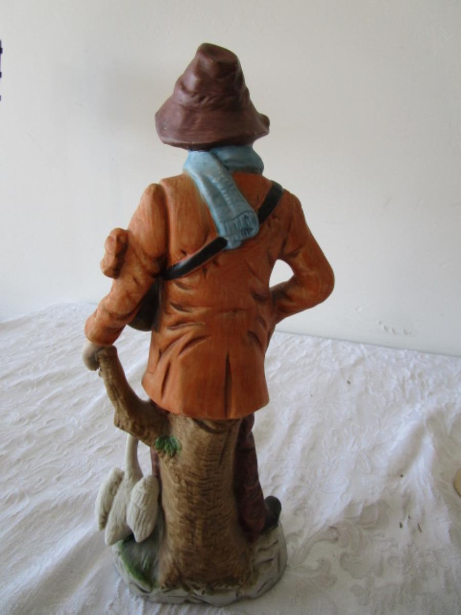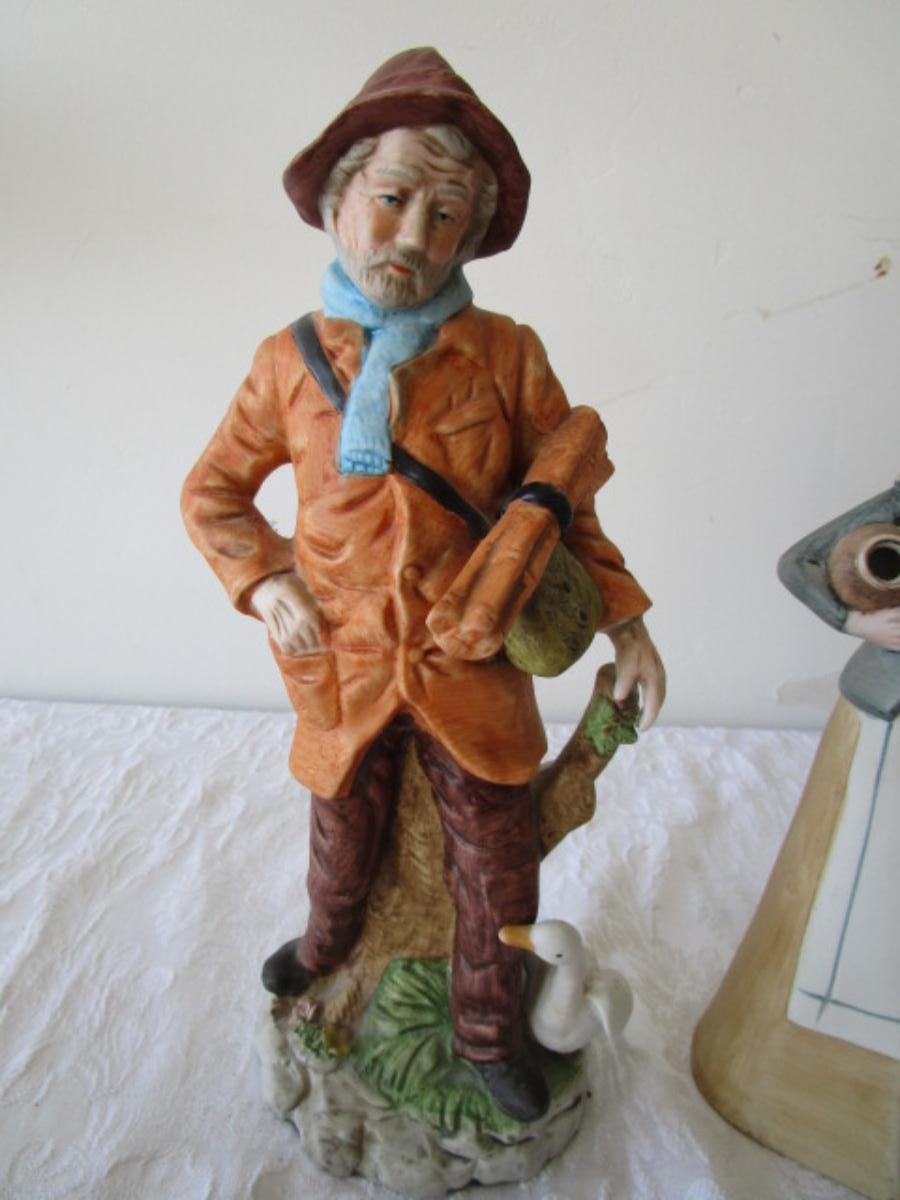 3 ceramic figurines, 1 man & 1 woman each with a goose, young woman