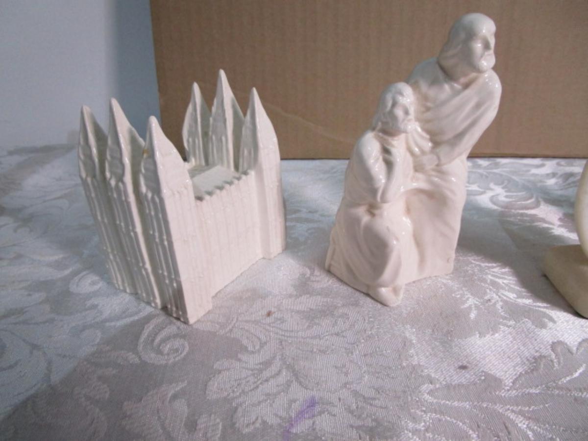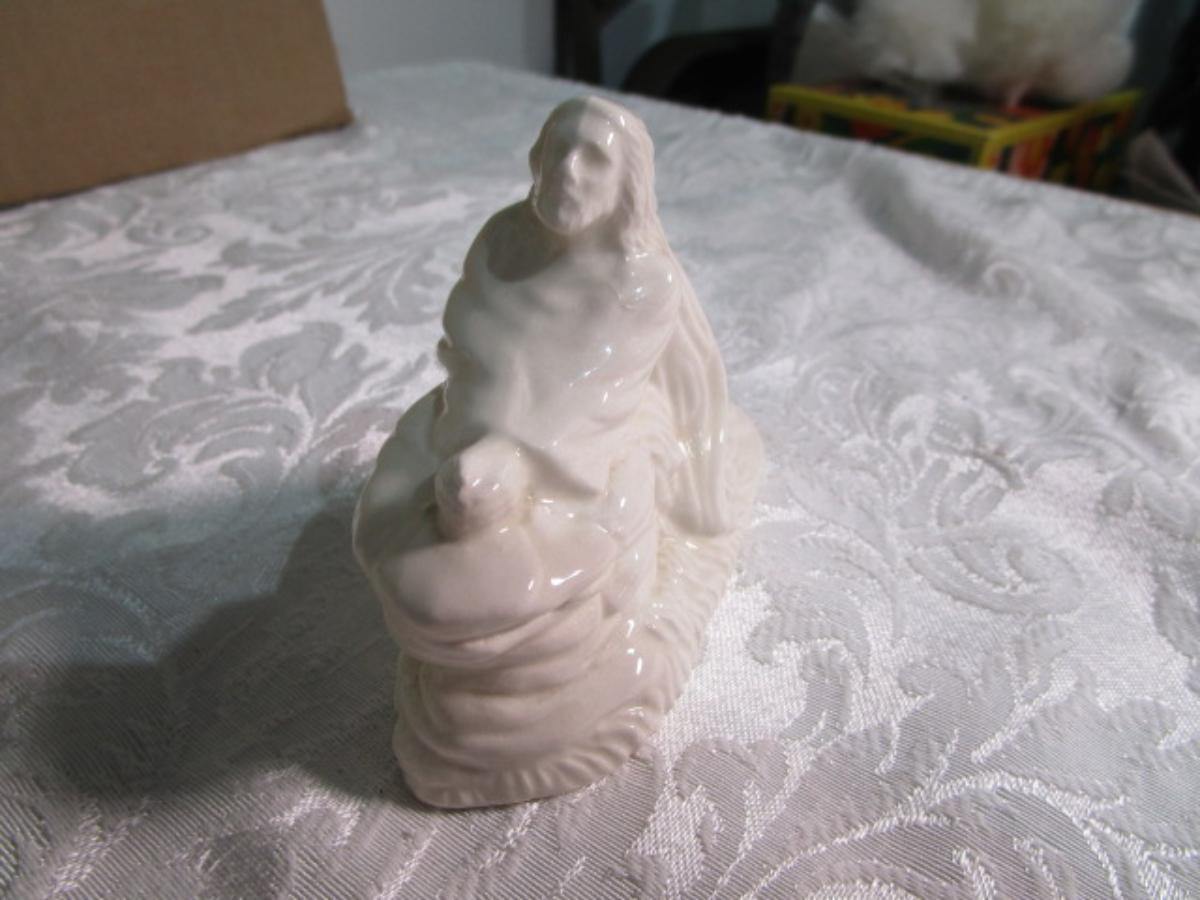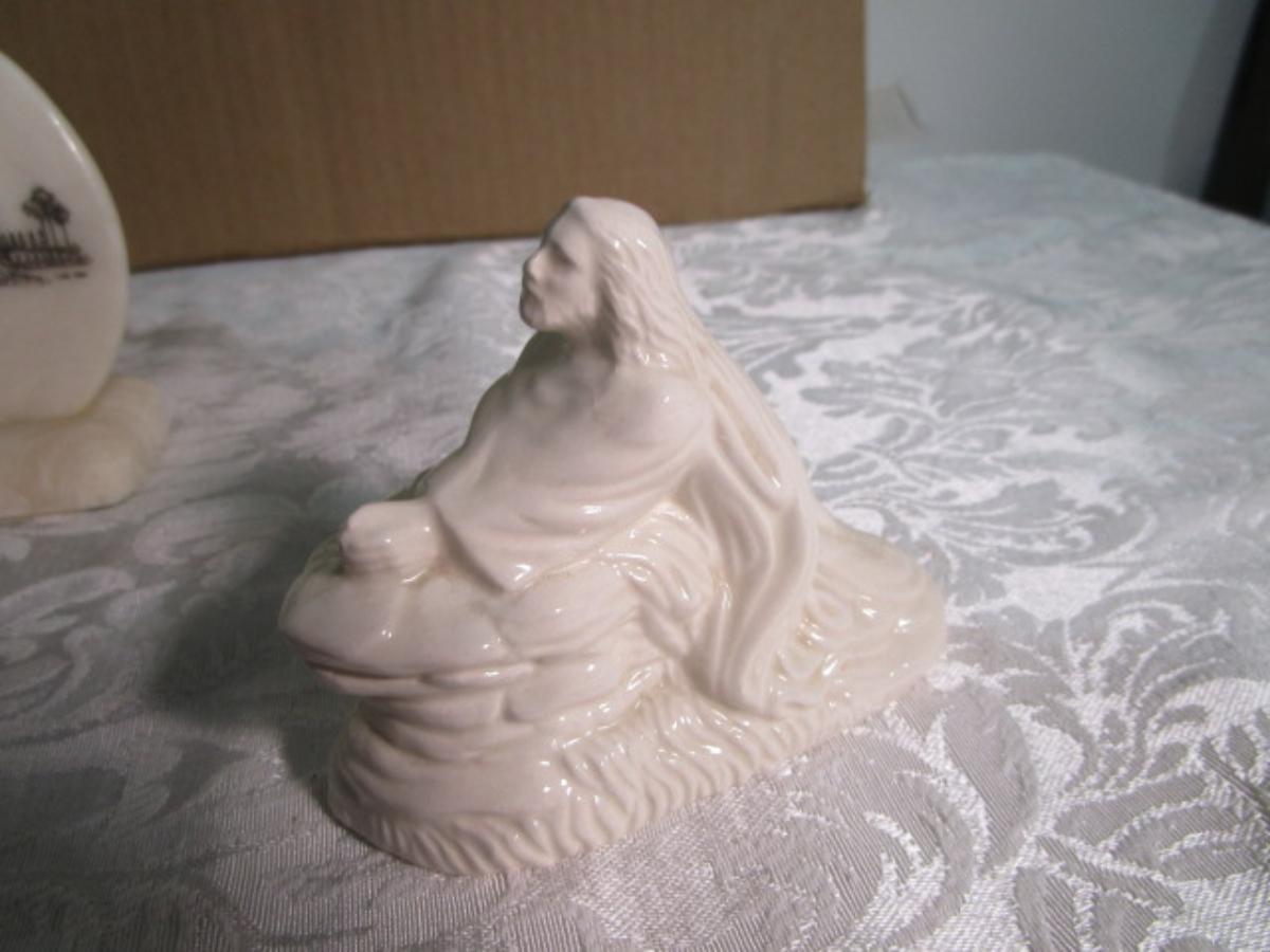 3 ceramic figurines (SL temple, Jesus, 2 men), 1 Mesa temple carving