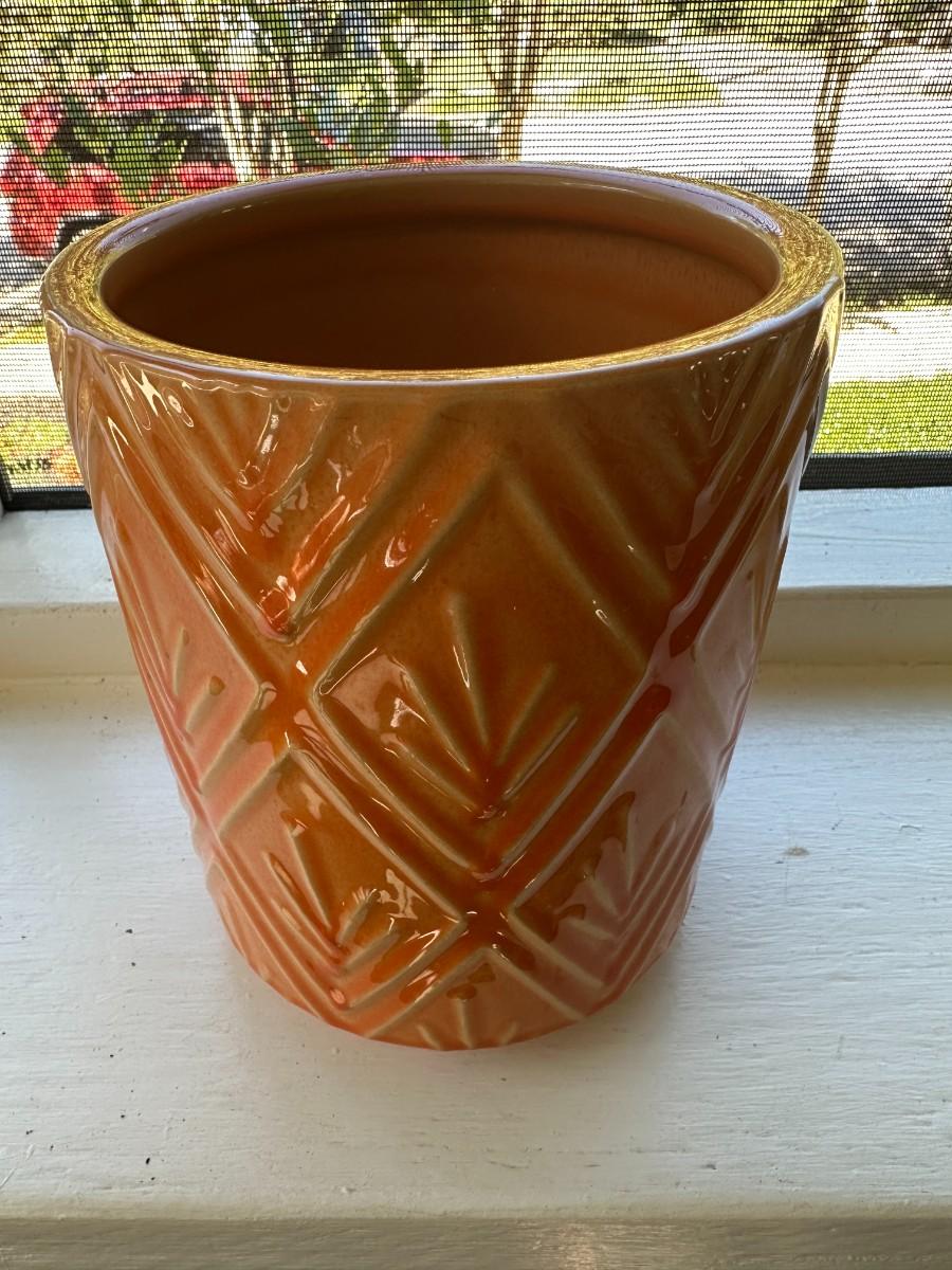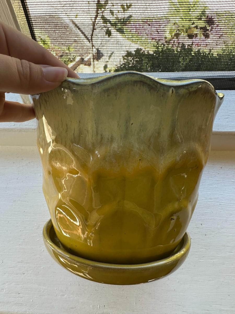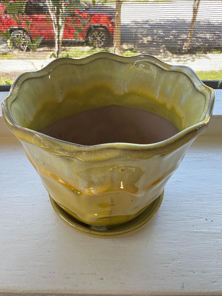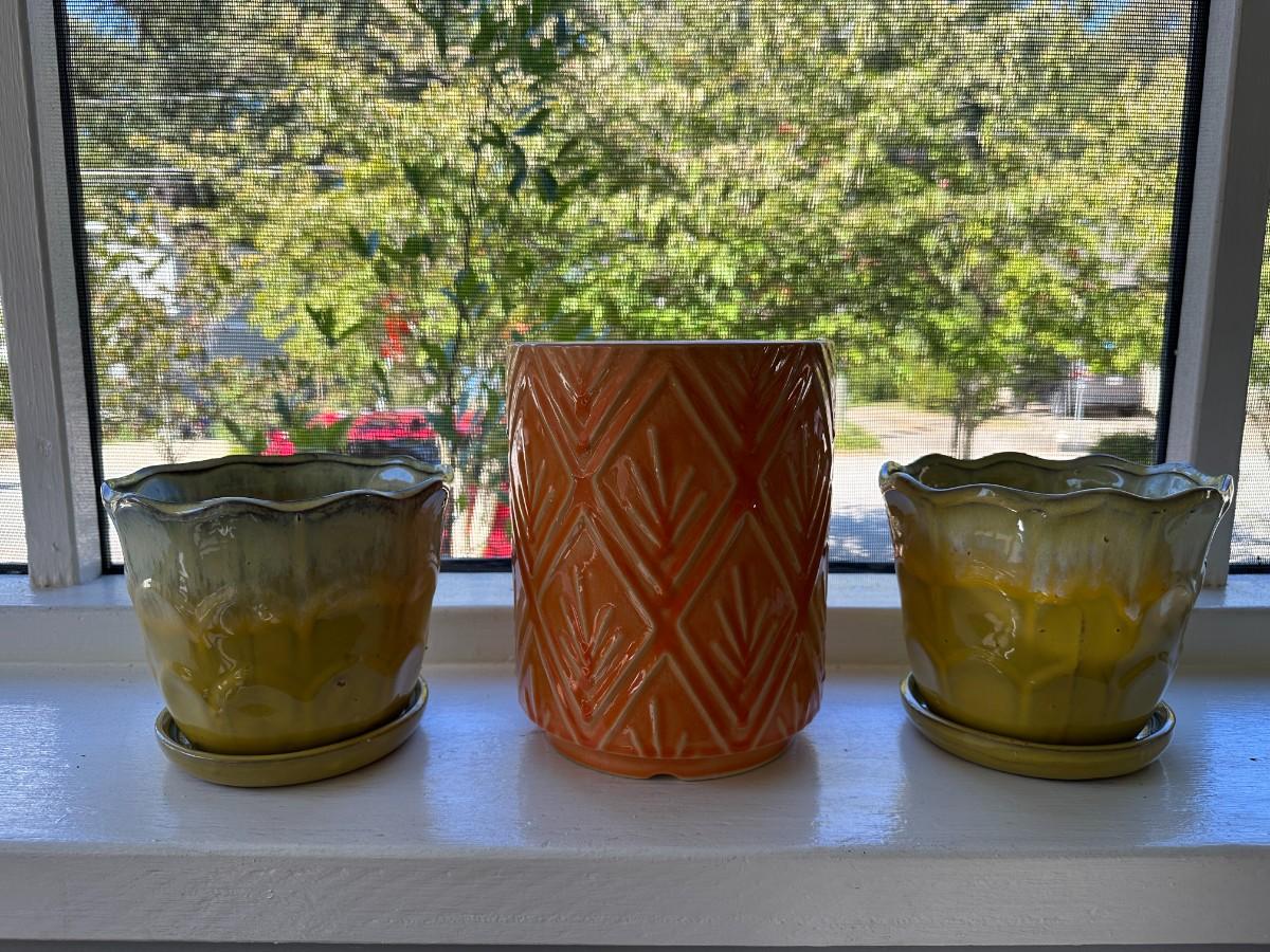 1 Lt Orange 8.5"h, 2 Yellow/Green Pots 6"h