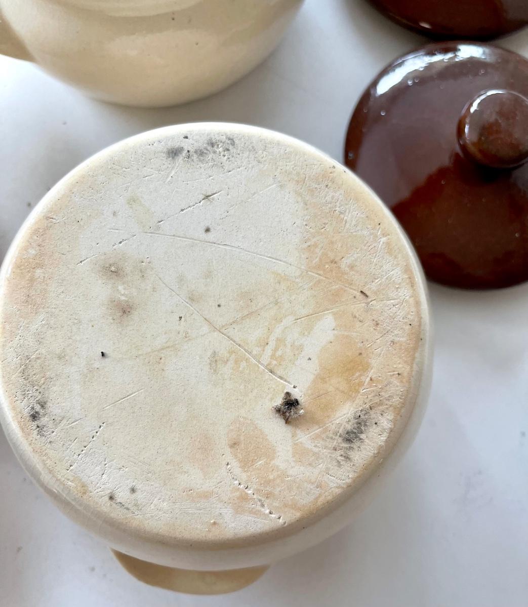 Creamy white and brown bowls in good condition.
