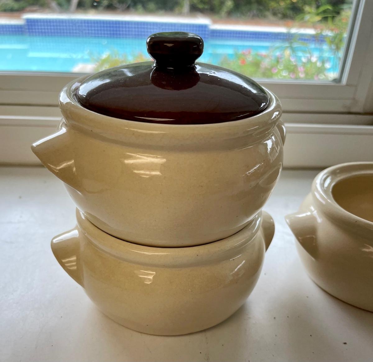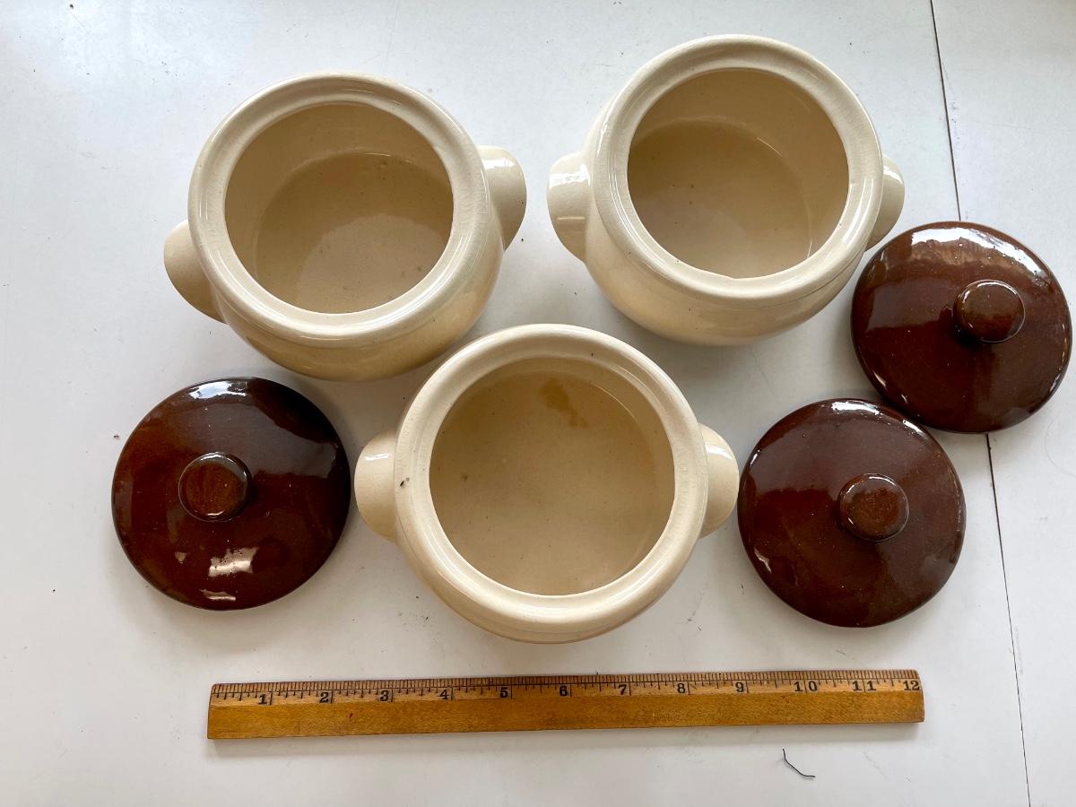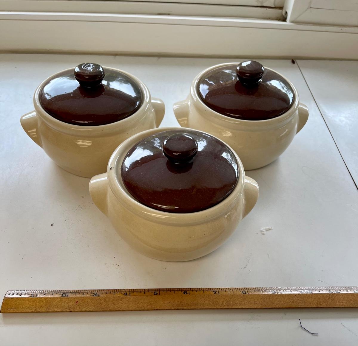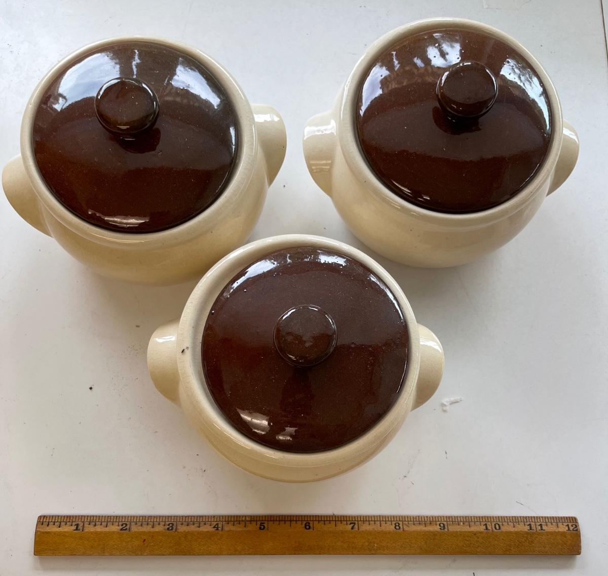 3 Ceramic pottery soup / bean bowls