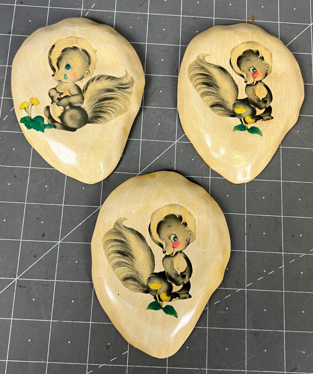 (3) Chalkware Skunk Plaque