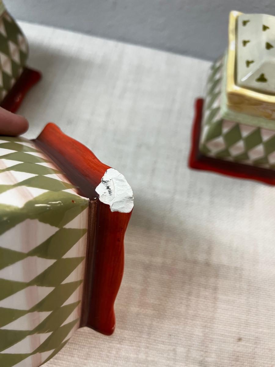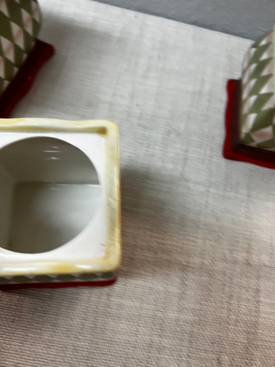 Used with Lids Good Condition. Small one has a chip on the corner.