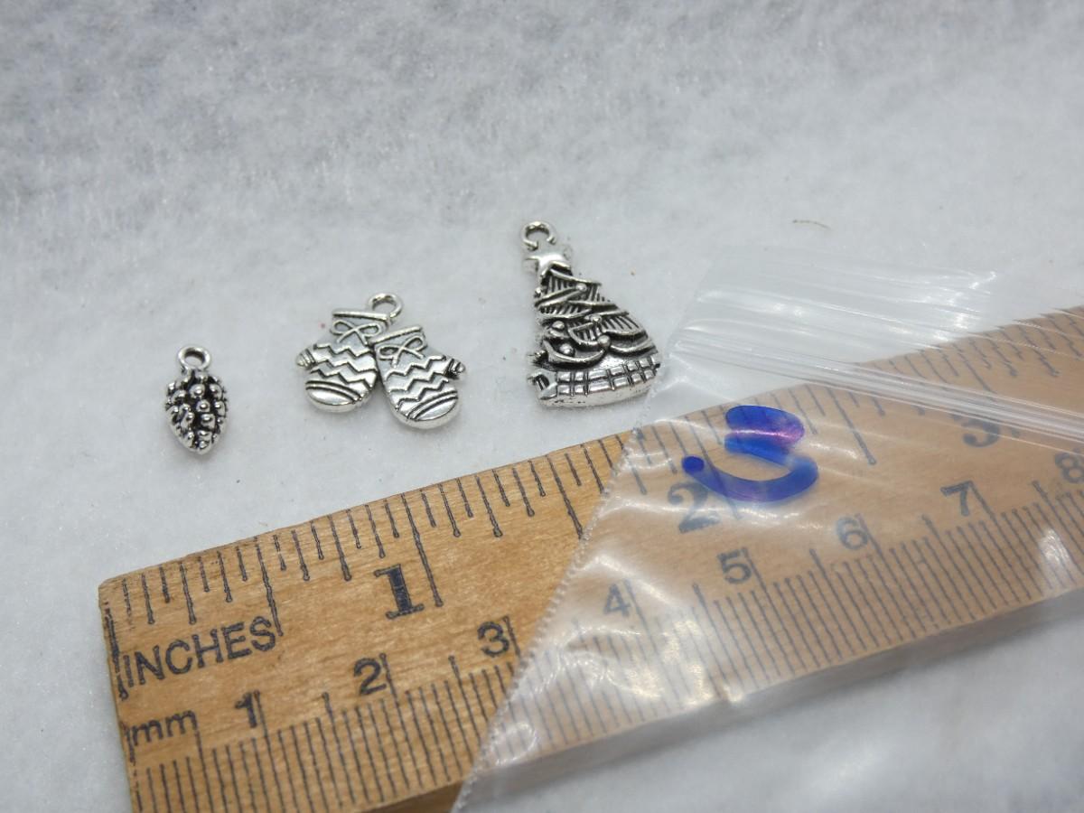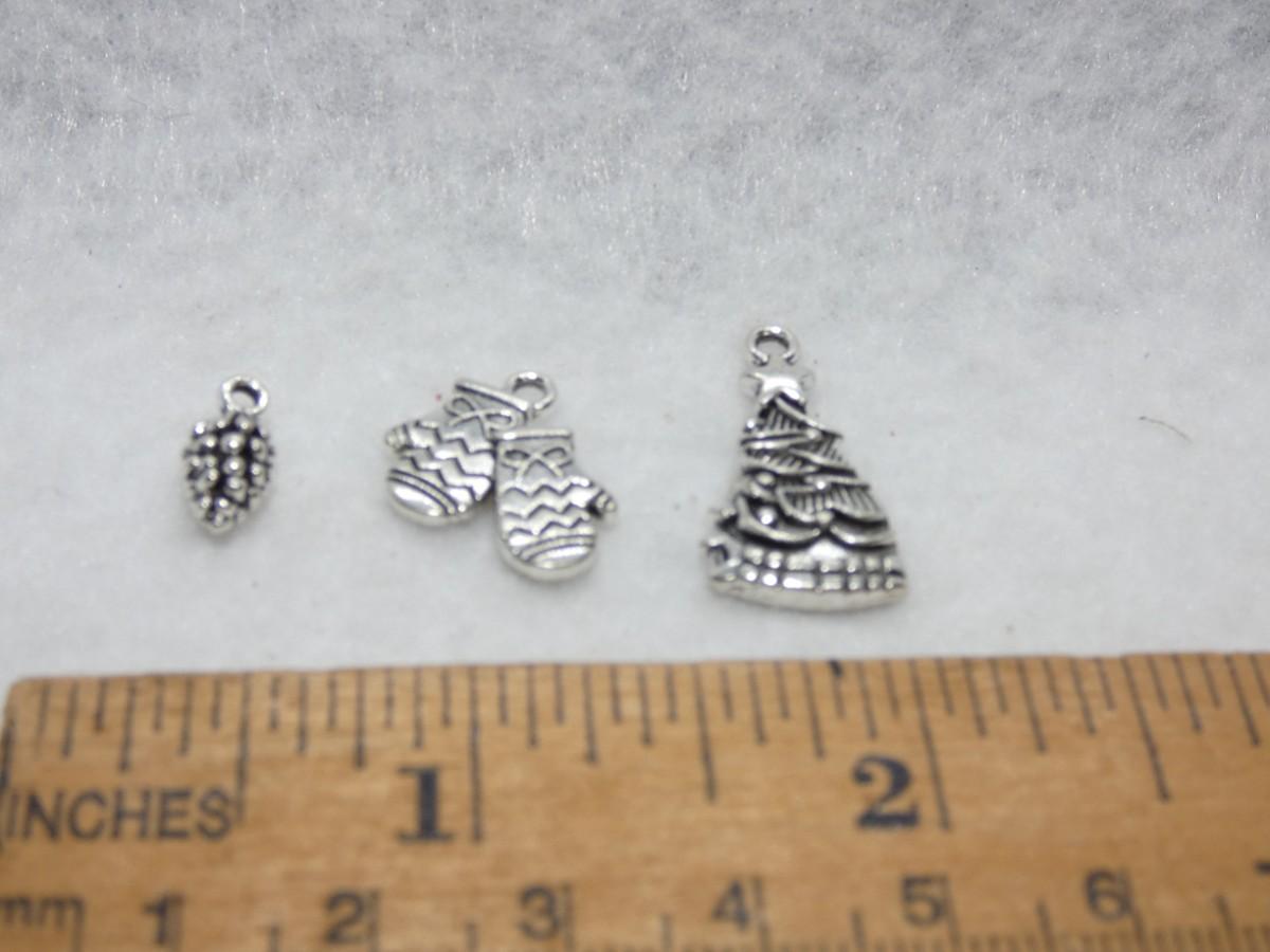 3 Christmas Charms Lot #3 Pine Cone, Mittens, Christmas Tree