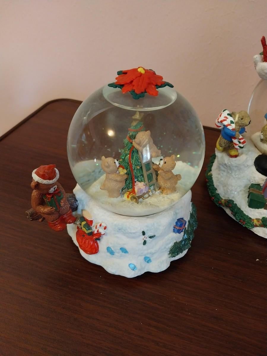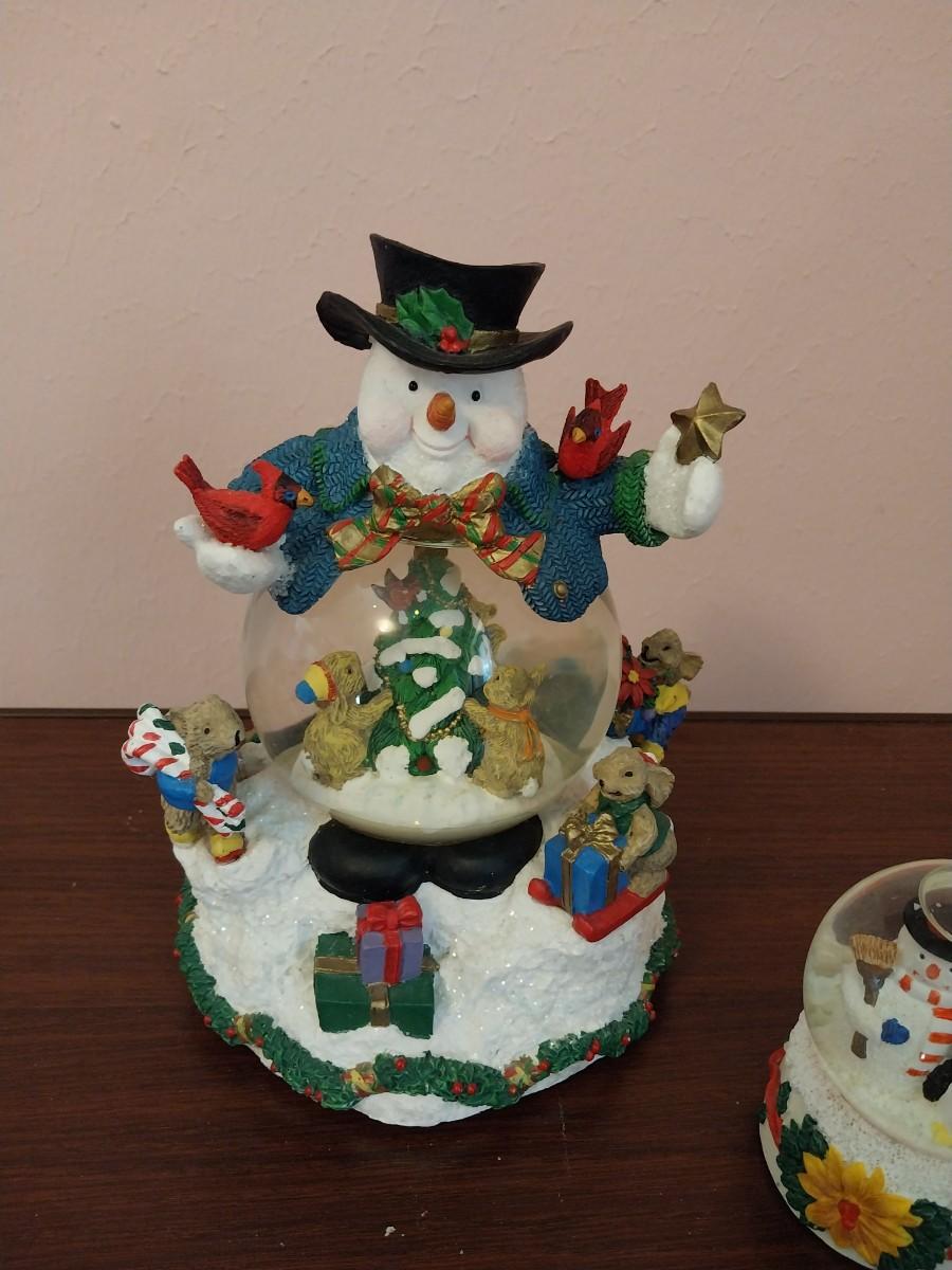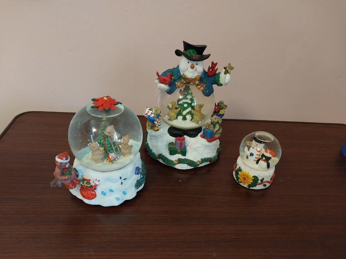 3 CHRISTMAS SNOW GLOBES, 1 MUSICAL